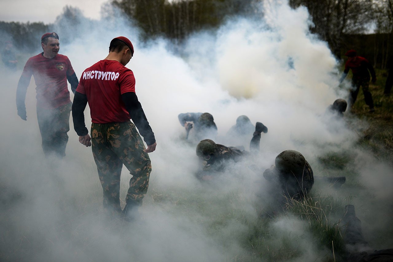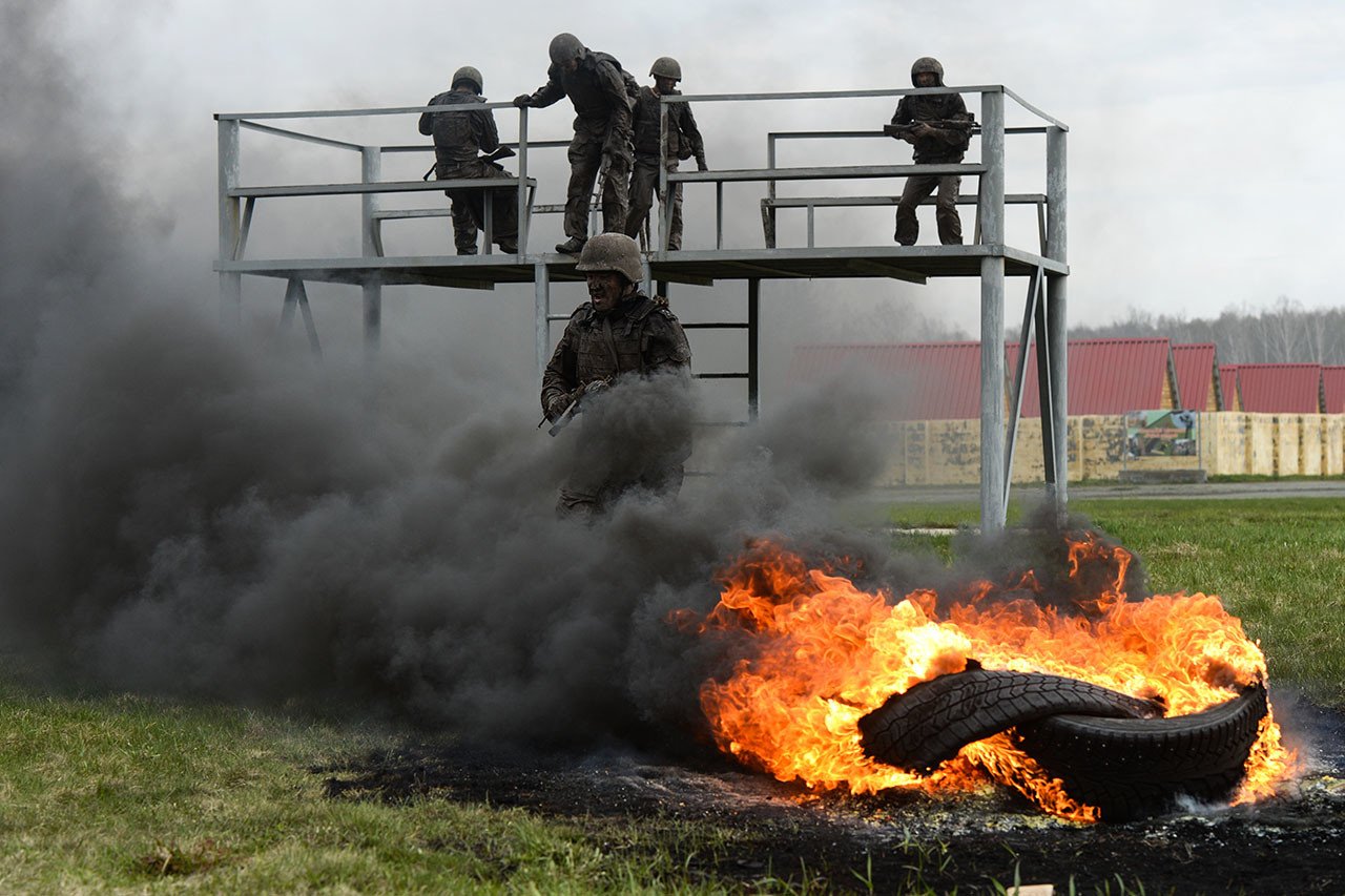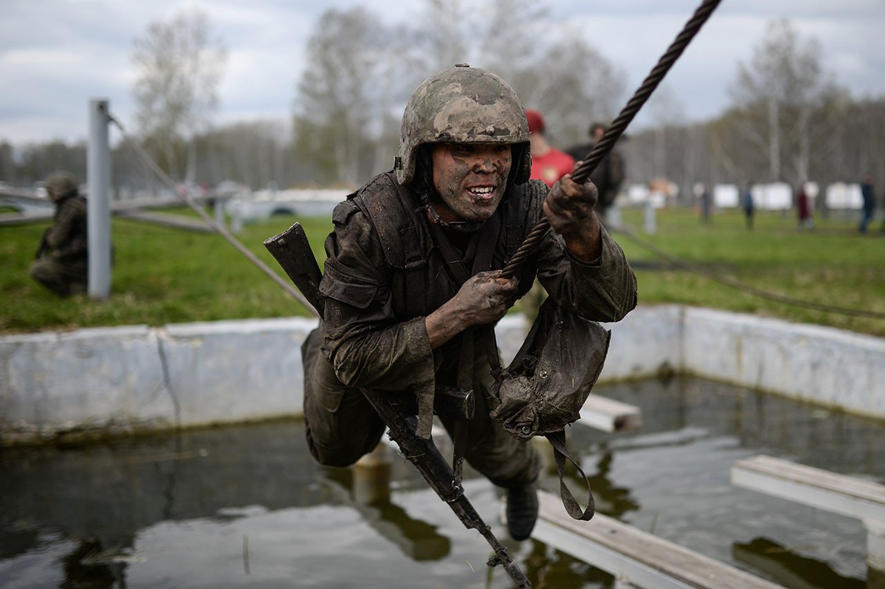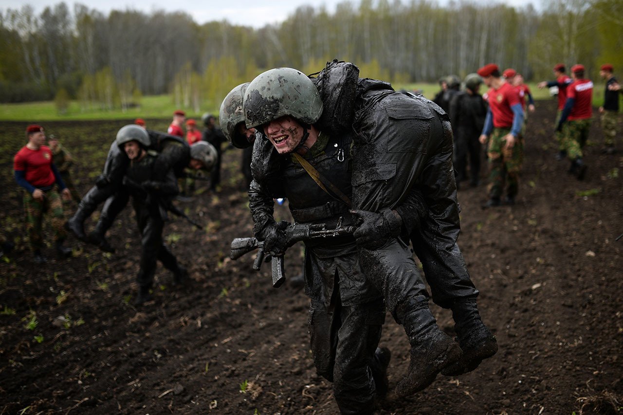 La Guardia Nacional de Rusia pone a prueba a sus soldados con unos severos ejercidos, como carrera de obstáculos, combates cuerpo a cuerpo y carreras de 100 metros y 3 kilómetros, entre otros. En las últimas competencias llevados a cabo en Siberia entre 49 participantes, llegaron hasta al final solo 13, que fueron premiados con una boina roja, que indica un objeto de honor para cada militar.