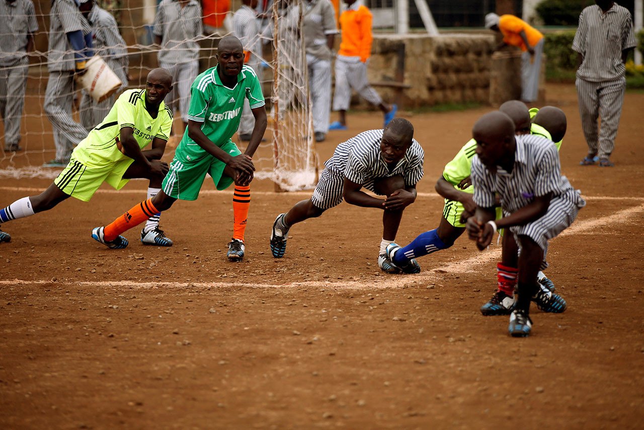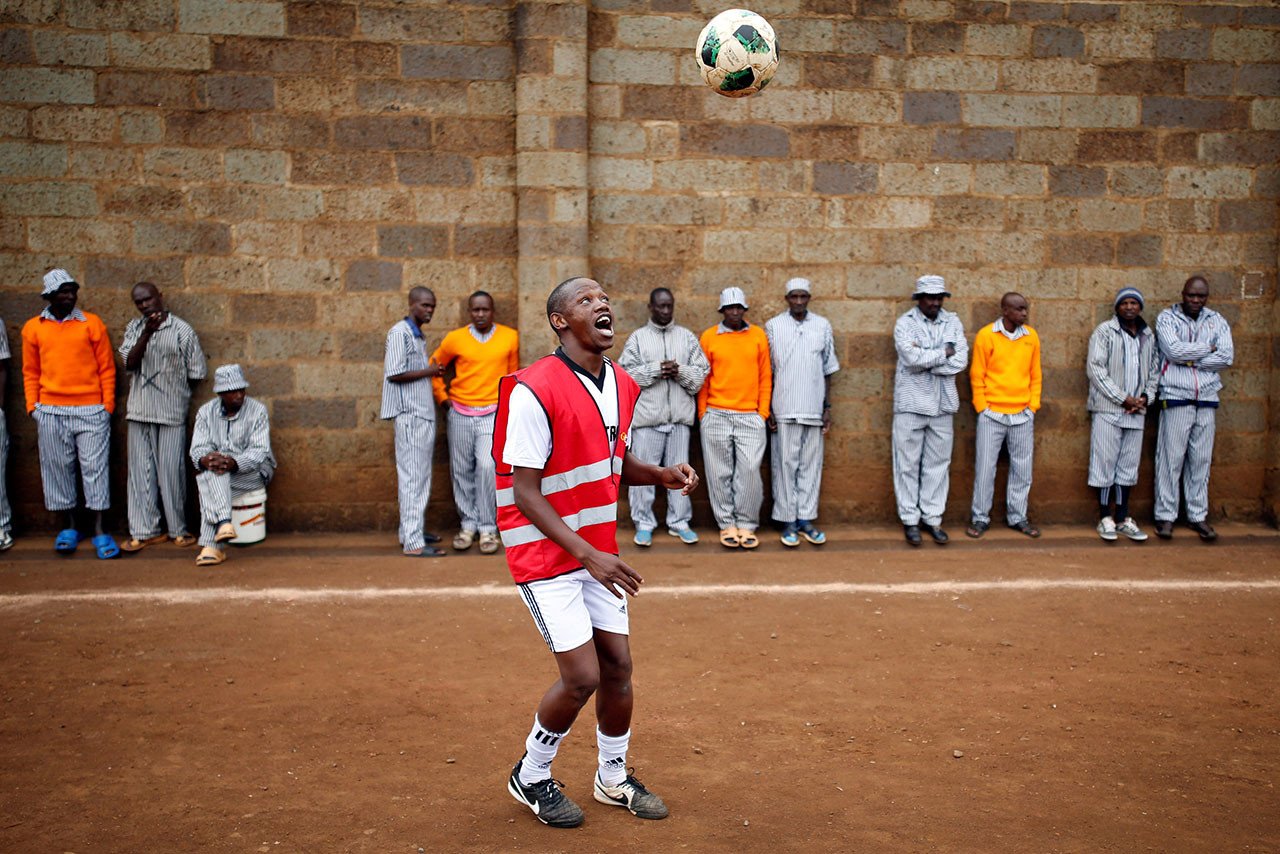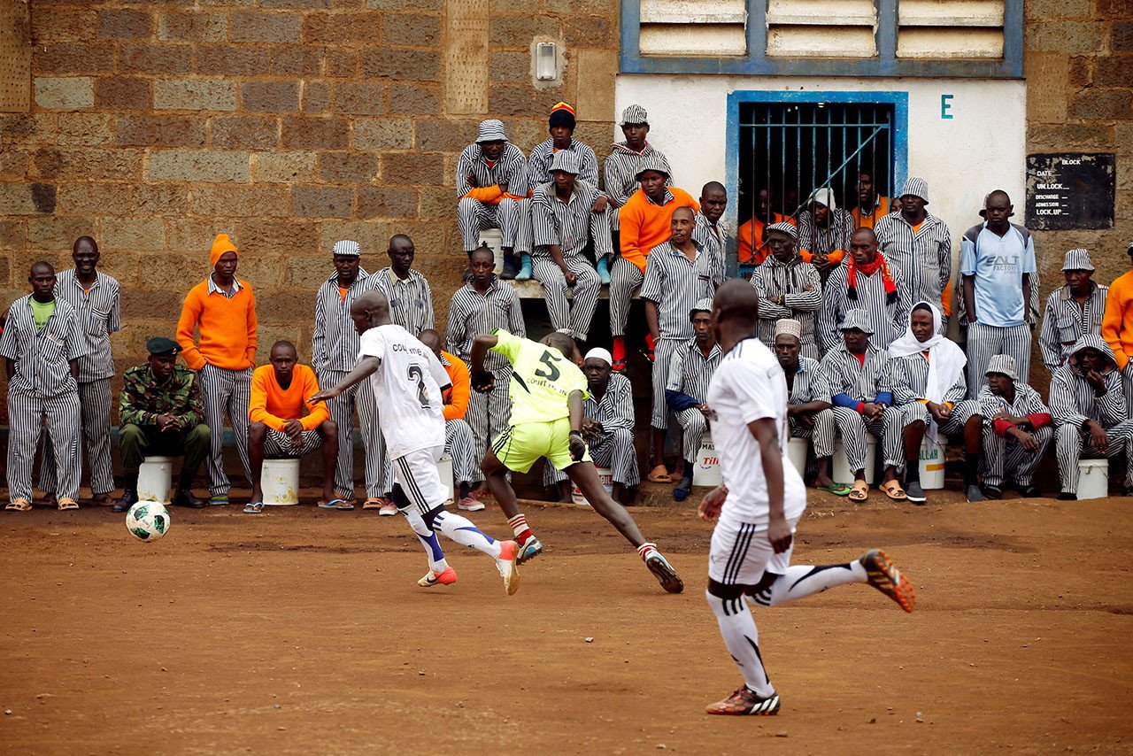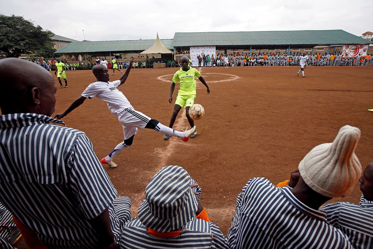 Este jueves Rusia se impuso a Arabia Saudita en el estadio Luzhnikí de Moscú por 5 goles a cero, el mismo resultado que se registró en un singular partido jugado a miles de kilómetros del país eslavo en un 'Rusia- 'Arabia Saudita' simulado en el polvoriento campo de la prisión de máxima seguridad de Kamiti en Nairobi, Kenia. Los reos bautizaron a sus equipos como las selecciones que abrieron el campeonato. Le ofrecemos las mejores imágenes del partido en tierras africanas.