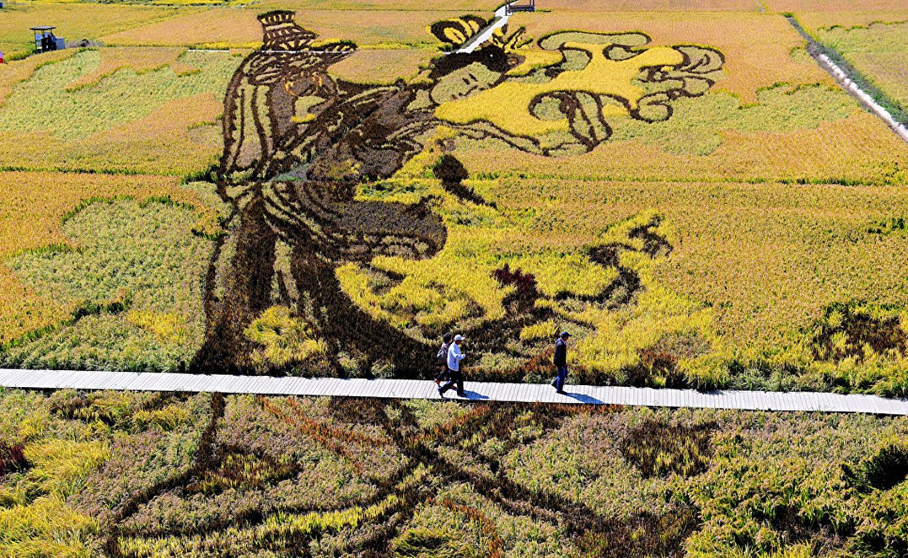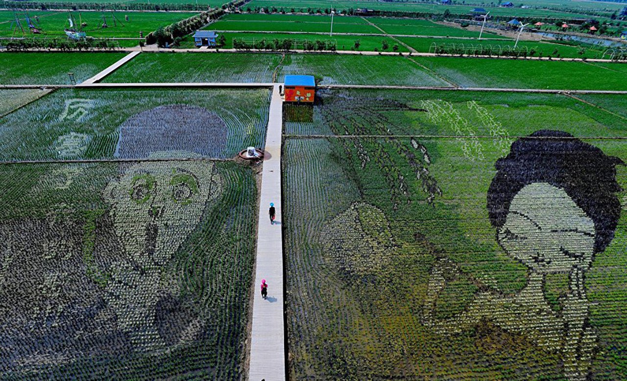 Los granjeros chinos han creado en campos de arroz, que tienen cientos de kilómetros de superficie, unas obras increíbles. Los campesinos utilizan diferentes tipos de arroz y los plantan cerca uno del otro, que les permite confeccionar unas imágenes realistas de colores diversos. Disfruten de este arte inusual en esta galería.