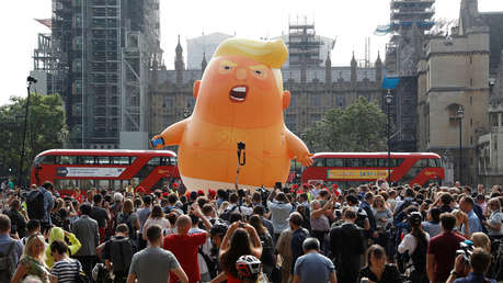 El presidente de EE.UU., Donald Trump, ha realizado esta semana una visita oficial de dos días a Reino Unido. El mandatario estadounidense se ha reunido con la primera ministra Theresa May, así como con la reina Isabel II. Asimismo, Trump ha visitado la embajada de EE.UU. en dicho país. Unas 200.000 personas han mostrado su rechazo en Londres ante la visita del mandatario en distintas manifestaciones.