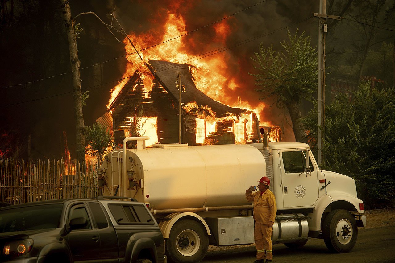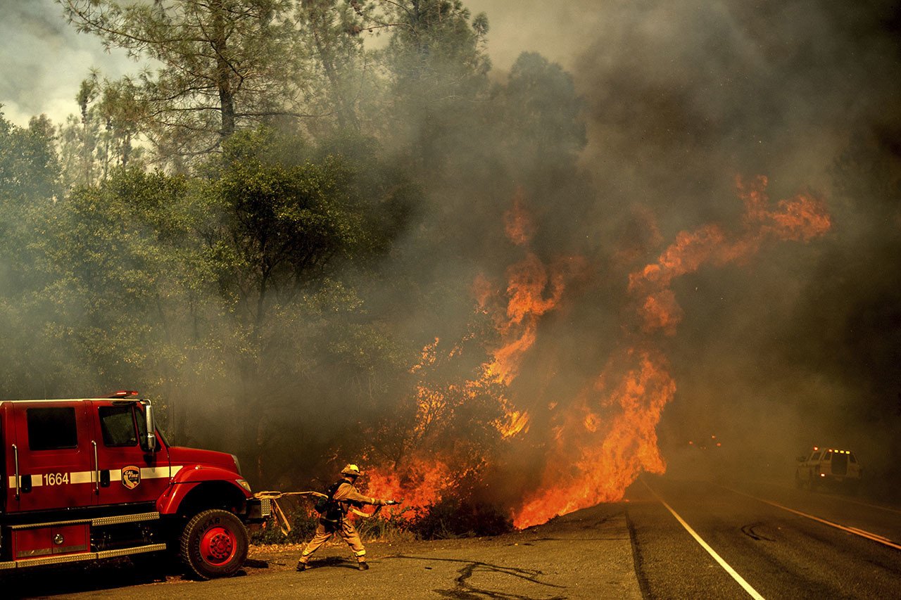 Un gran incendio forestal ha arrasado este jueves dos pequeñas comunidades del norte de California antes de alcanzar la ciudad de Redding. Un operador de excavadora ha muerto, varios bomberos han sufrido quemaduras y miles de personas se han visto obligadas a huir ante el avance de un incendio que las autoridades forestales describen como "un muro de llamas" que "no se detiene" y que está "derribando todo a su paso".