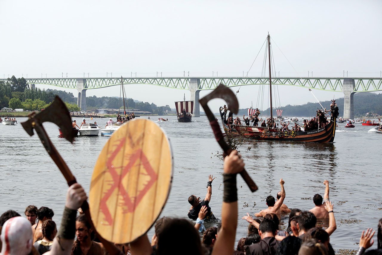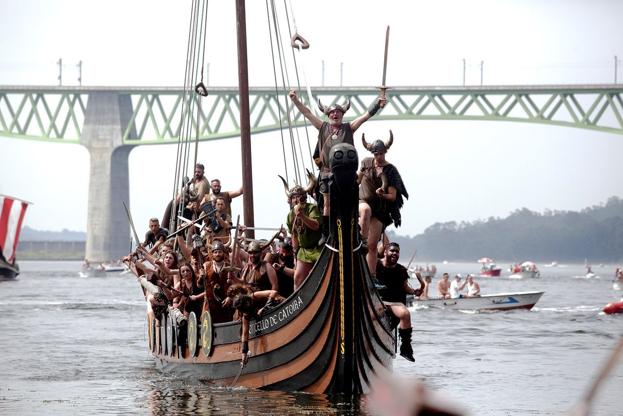 Cada primer domingo de agosto, la localidad española de Catoira, que se encuentra en la costa de Galicia, al noroeste del país, se llena de una multitud que viste austeros ropajes de piel y aterradores cascos con cuernos mientras agita sus espadas, hachas, martillos y escudos al grito de guerra. Y es que aquí se celebra la Romería vikinga, un festival turístico dedicado a recordar las incursiones que los aguerridos navegantes escandinavos realizaron en la región entre los siglos IX y XII.