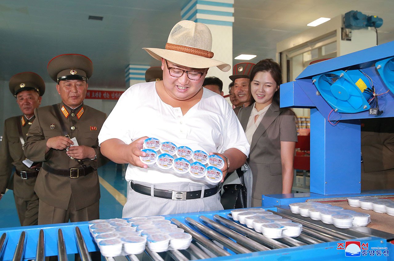 La agencia estatal KCNA ha difundido las imágenes de la visita del líder de Corea del Norte, Kim Jong-un, a una planta alimentaria. En las fotografías se aprecia al mandatario sonriendo y con un refrescante 'look' veraniego mientras inspecciona las existencias de productos y las líneas de producción de las instalaciones. En esta ocasión, además de por sus asistentes, Kim Jong-un estuvo acompañado por su esposa, Ri Sol-ju.