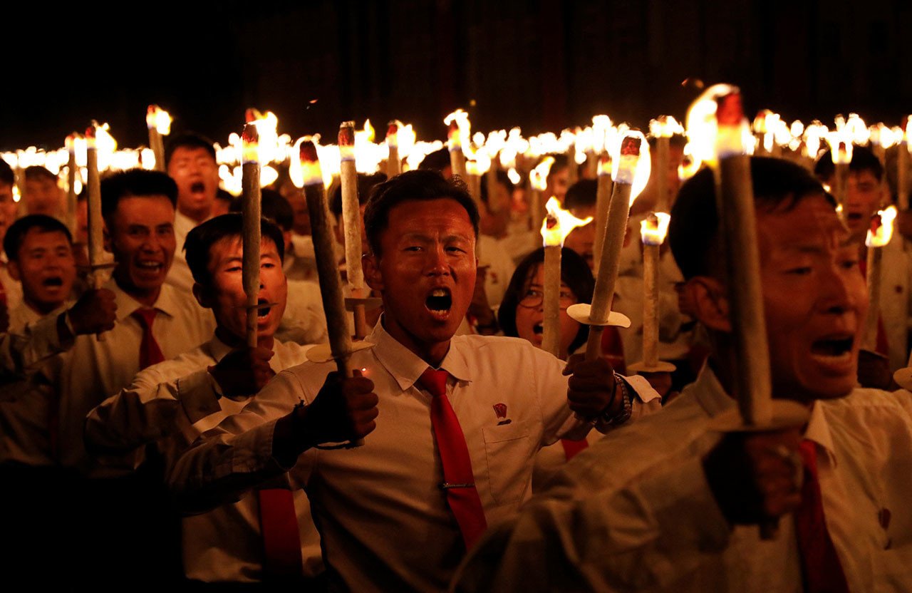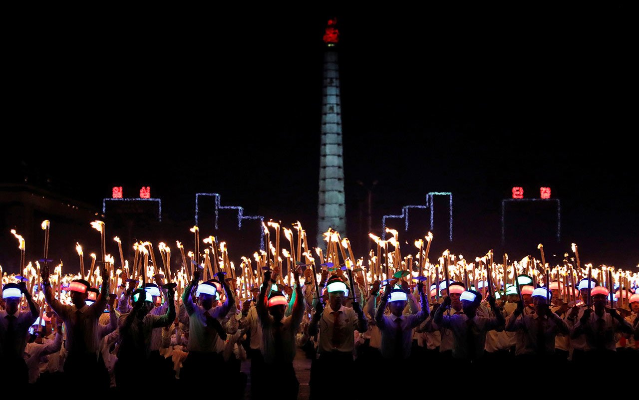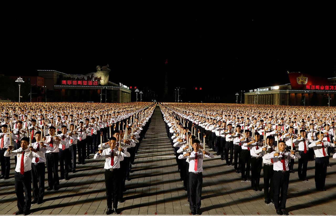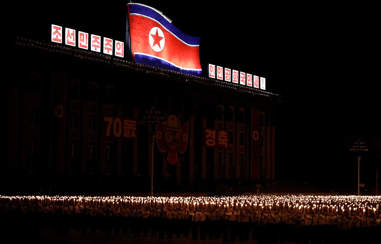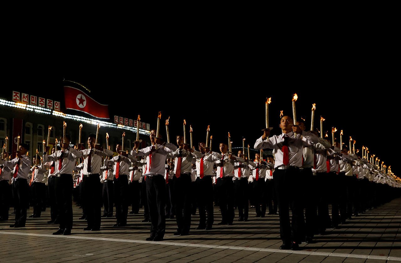 Corea del Norte celebra su 70.º aniversario con juegos y un espectacular desfile con antorchas
