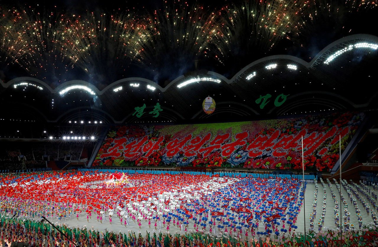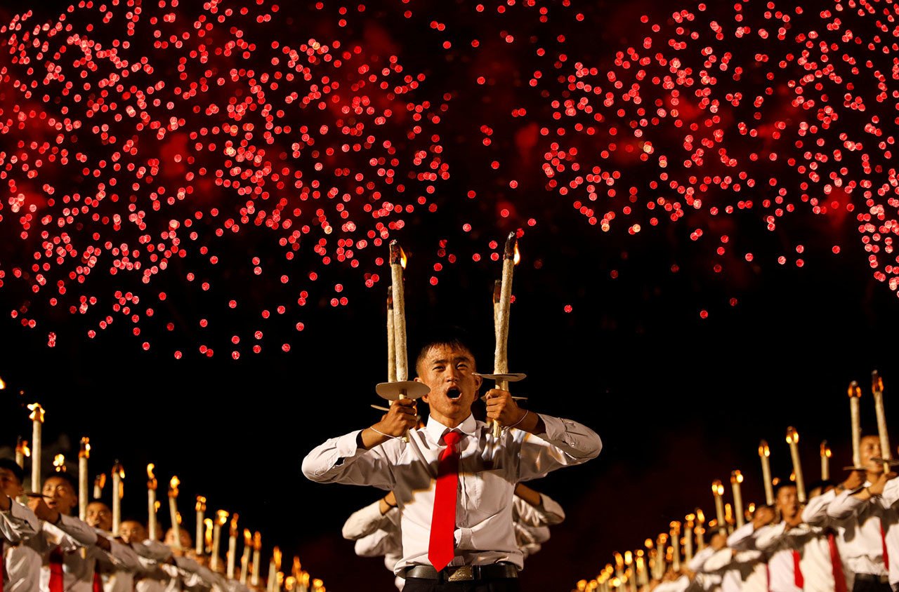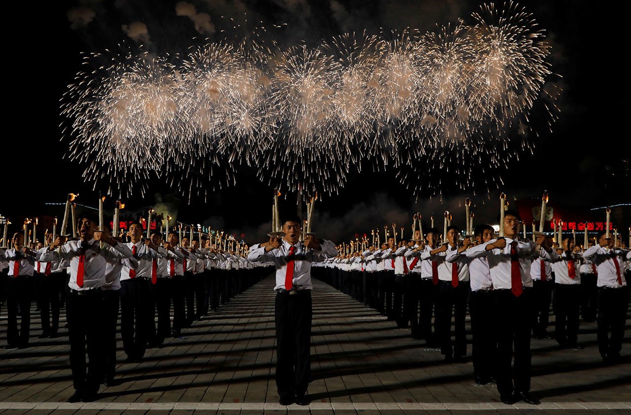 Corea del Norte ha organizado varios eventos de gran magnitud para conmemorar su 70.º aniversario. Como parte de esos festejos, el pasado 9 de septiembre realizaron 'juegos de masas', en los que actuaron gimnastas, emplearon drones y ofrecieron un espectáculo con láseres. A continuación, miles de jóvenes marcharon con antorchas por Pionyang. En esta galería hemos recogido los instantes más memorables de esa celebración.