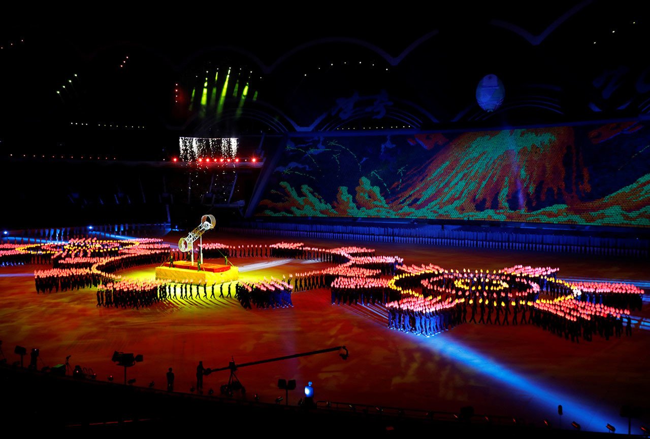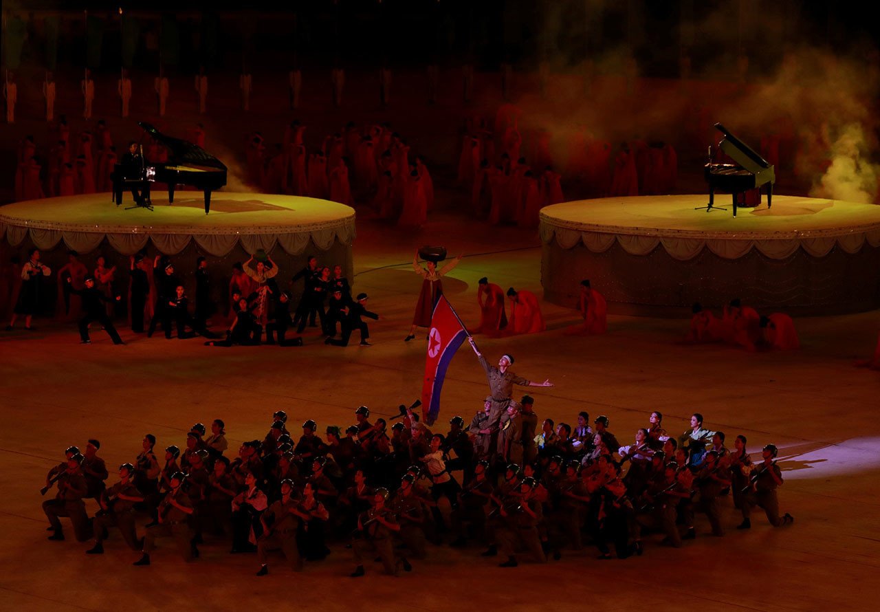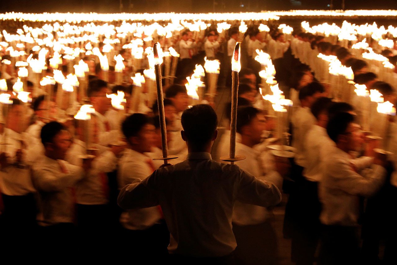 Corea del Norte ha organizado varios eventos de gran magnitud para conmemorar su 70.º aniversario. Como parte de esos festejos, el pasado 9 de septiembre realizaron 'juegos de masas', en los que actuaron gimnastas, emplearon drones y ofrecieron un espectáculo con láseres. A continuación, miles de jóvenes marcharon con antorchas por Pionyang. En esta galería hemos recogido los instantes más memorables de esa celebración.
