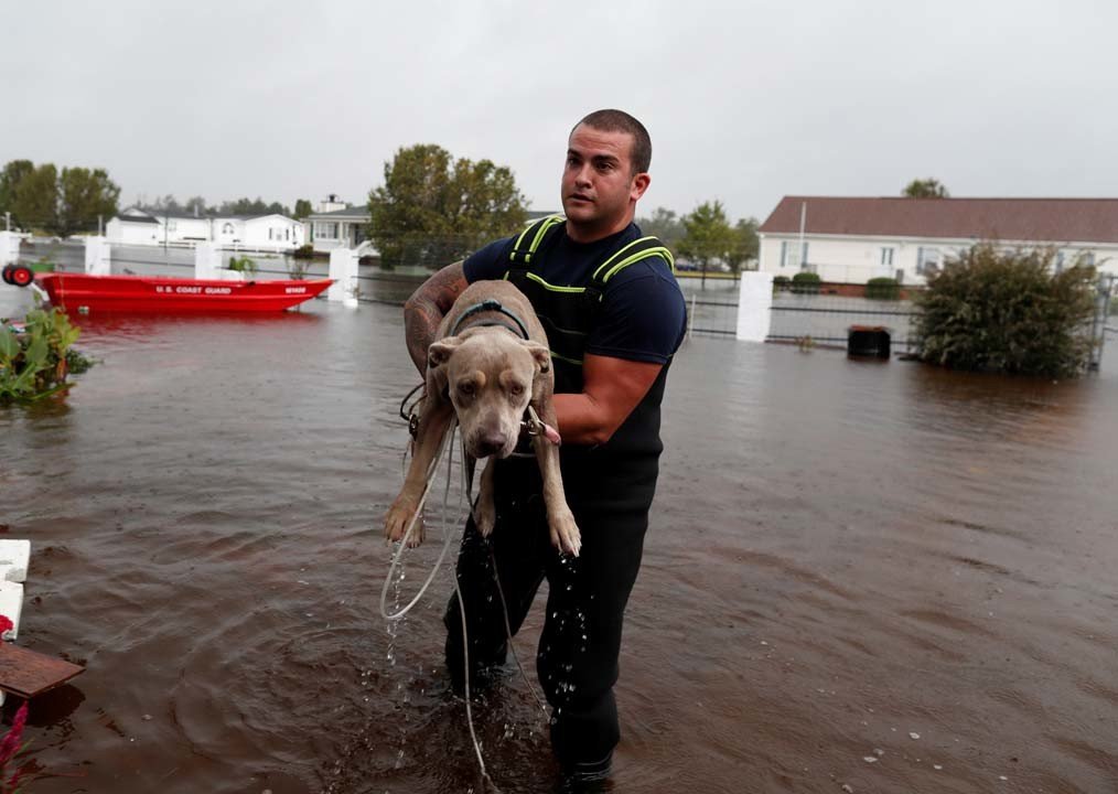 Tras el devastador paso del huracán Florence, que el pasado 14 de septiembre azotó a Carolina del Norte y Carolina del Sur (EE.UU.), miles de personas fueron evacuadas a causa de las inundaciones. Mientras algunos vecinos lograron subirse a los botes de rescate junto a sus mascotas, otros animales fueron olvidados por sus dueños en medio del pánico y posteriormente auxiliados por voluntarios y efectivos de la Guardia Costera.