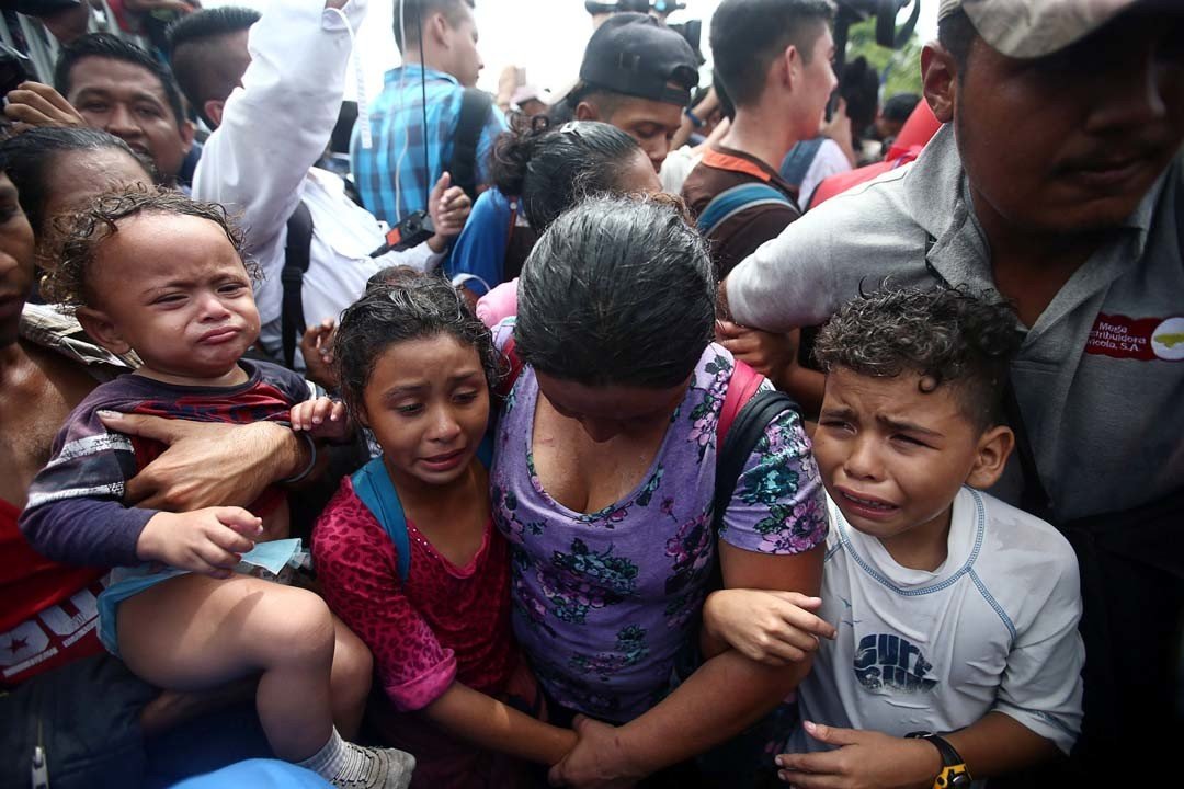 Varios miles de migrantes de Honduras, El Salvador y Guatemala con destino a EE.UU. han roto la valla fronteriza y han empezado a cruzar la frontera (algunos por un río) entre Guatemala y México, pese a las amenazas de represalia lanzadas por el presidente Donald Trump. Instigados por la violencia y la falta de oportunidades en su países, esta caravana desesperada se lanzó a una larga travesía en busca de una vida mejor.