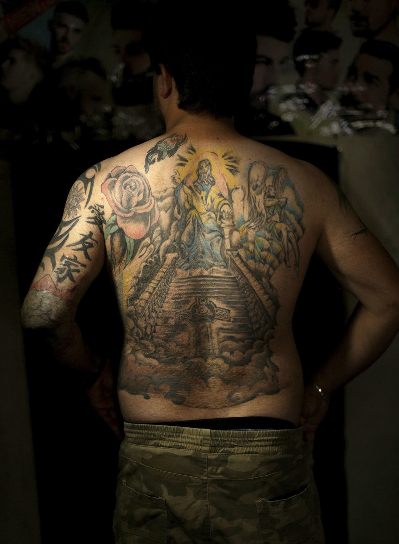 Con estos tatuajes, el soldado iraquí Saad Khuder intenta disimular las horrendas marcas en la piel que le dejó la guerra contra el terrorismo, y expresar sus cicatrices emocionales. Así, uno de sus brazos luce el rostro de su hermano fallecido a causa de un coche bomba. Algunos tatuajes esconden las quemaduras que el hombre sufrió durante otro atentado. Mientras que una imagen de Jesús en su espalda representa la igualdad en entre el islam —su religión— y el cristianismo.