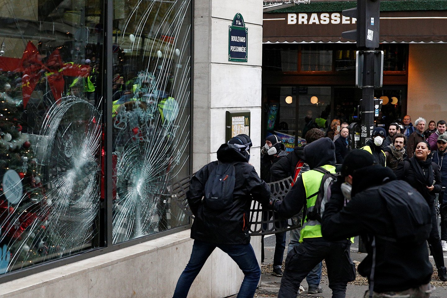 'Todos al Eliseo'. Con este lema marchan este sábado los 'chalecos amarillos' en París. Pero no solo la capital gala está envuelta en esta jornada de manifestaciones de los que rechazan las políticas oficiales y reformas económicas de Emmanuel Macron. En el cuarto fin de semana consecutivo de movilizaciones por toda Francia marchan 31.000 personas, según estimaciones. Las autoridades han movilizado a 89.000 agentes de las fuerzas del orden y ya se han reportado incidentes y los primeros heridos.