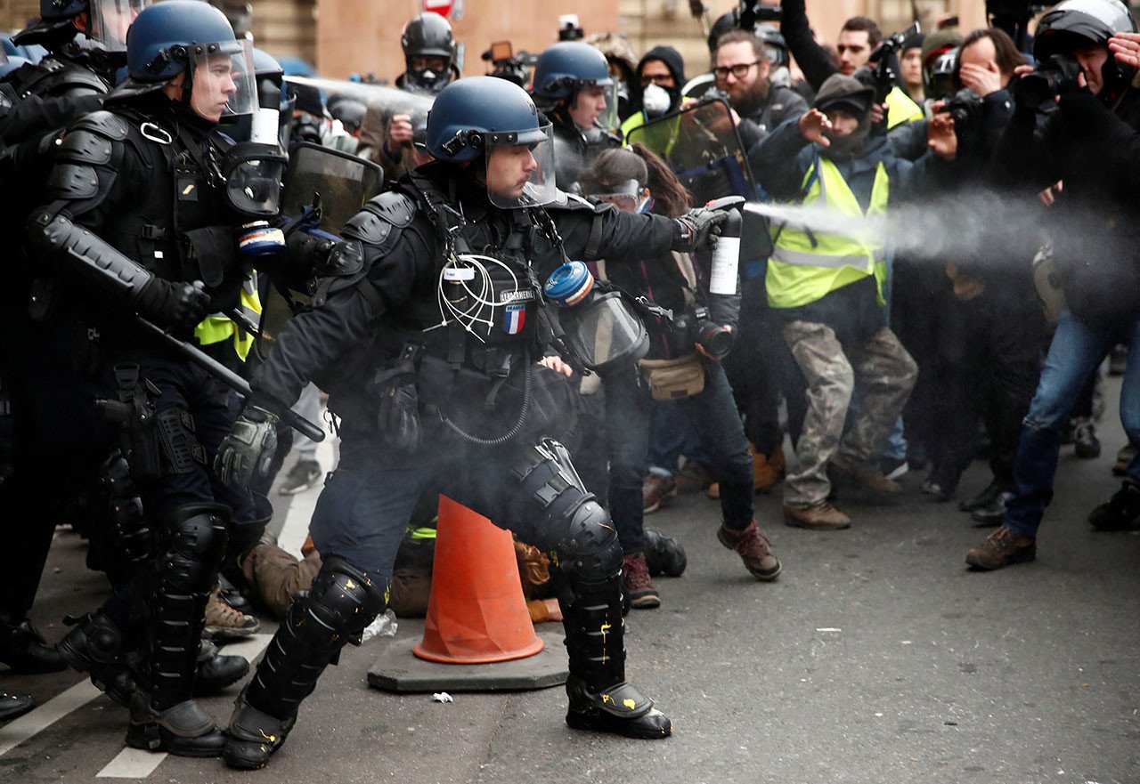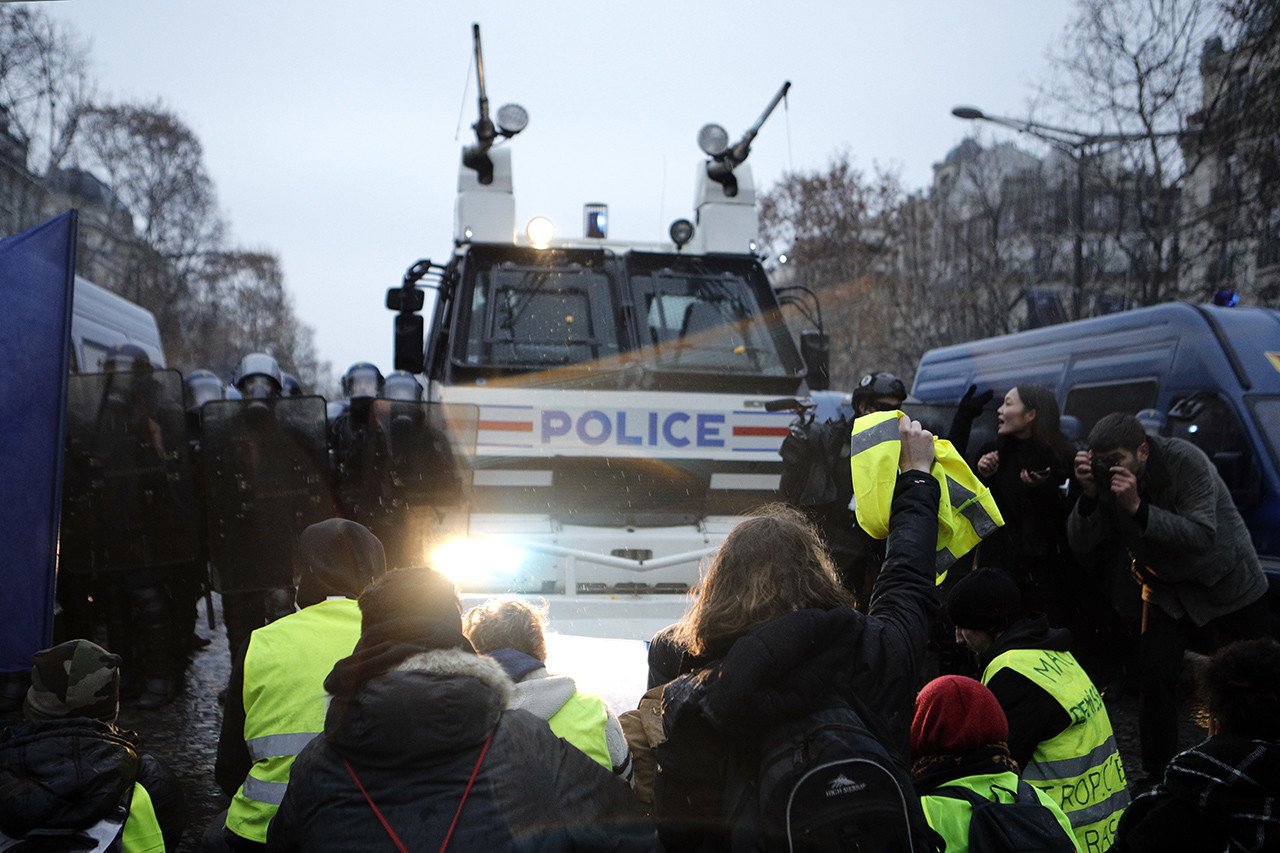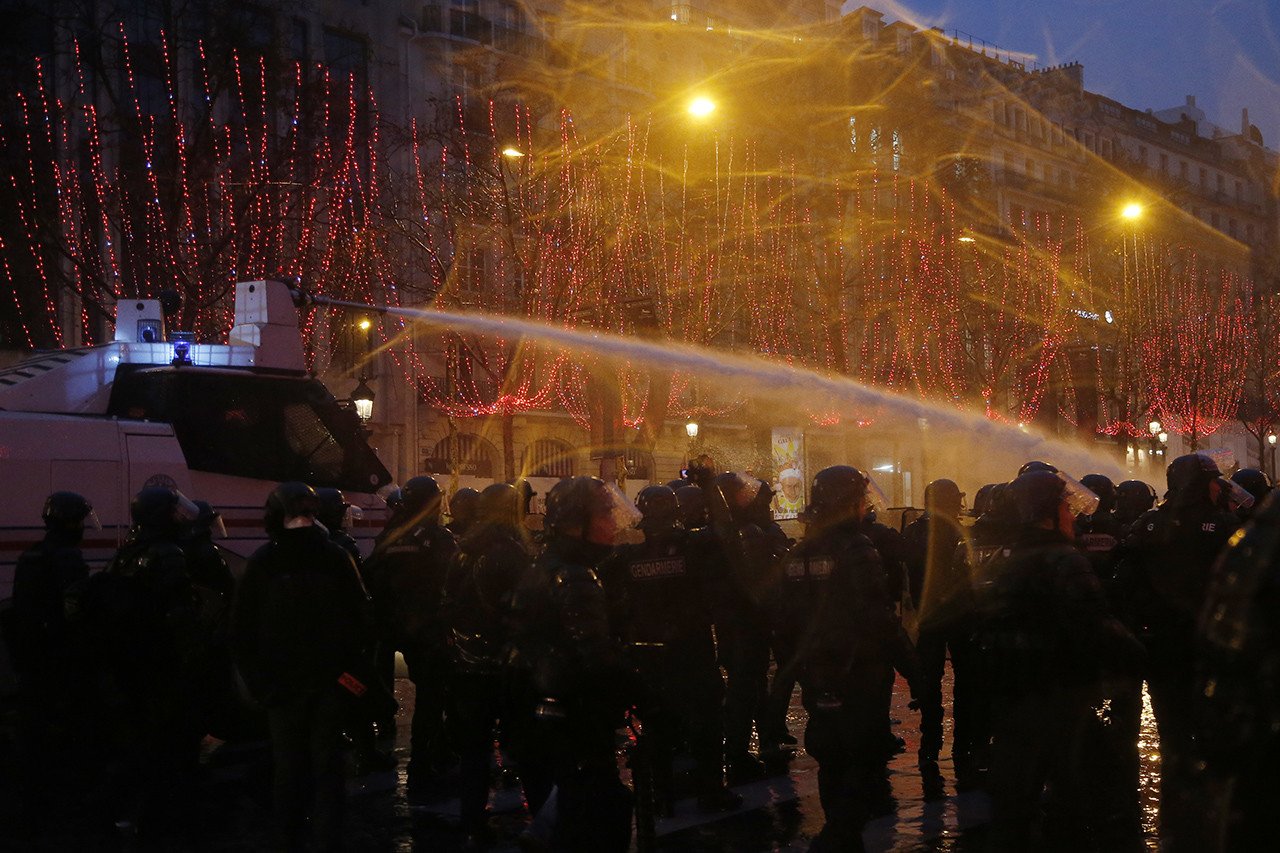 Alrededor de 2.200 manifestantes se han congregado este sábado en varias zonas de París para protagonizar el quinto acto de protesta continuada del movimiento de los 'chalecos amarillos'. La Policía francesa ha hecho uso tanto del gas lacrimógeno, como de cañones de agua, para dispersar a algunos participantes. Las autoridades ya han arrestado a 120 personas en una movilización significativamente más reducida que la de hace siete días.