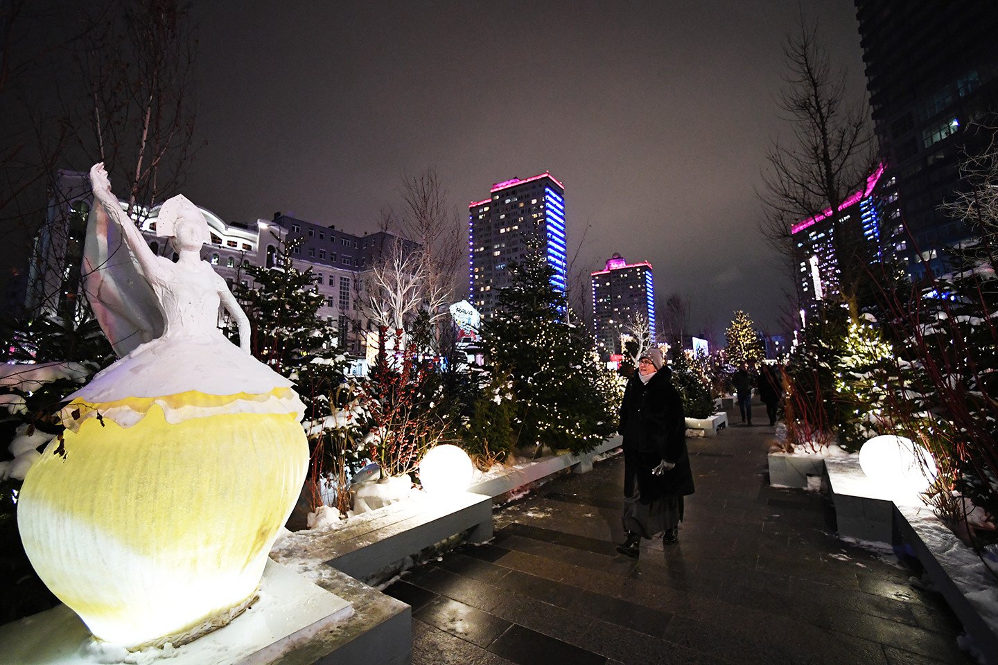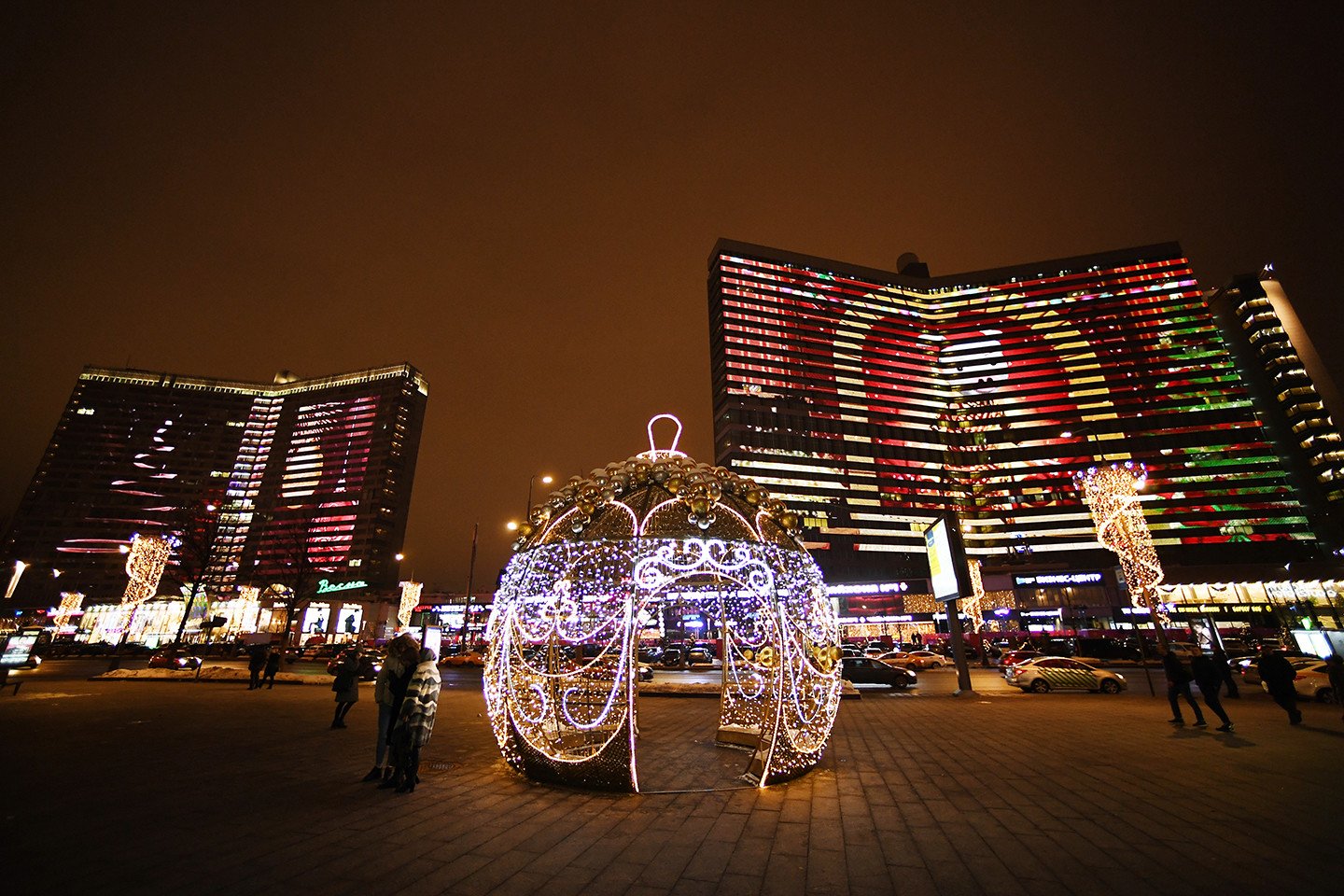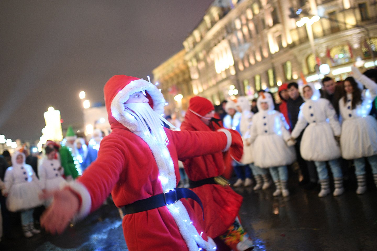 La capital rusa exhibe su cara festiva durante las fiestas navideñas y de Año Nuevo. Las calles de la metrópoli ostentan durante estos días luces de colores, enormes árboles de Navidad adornados con guirlandas (y hasta con libros) y mucha nieve. También se percibe en estas fechas en las coloridas avenidas y plazas moscovitas la atmósfera feriada que se manifiesta vía atavíos insólitos y sonrisas de los habitantes de la urbe y de miles de visitantes.