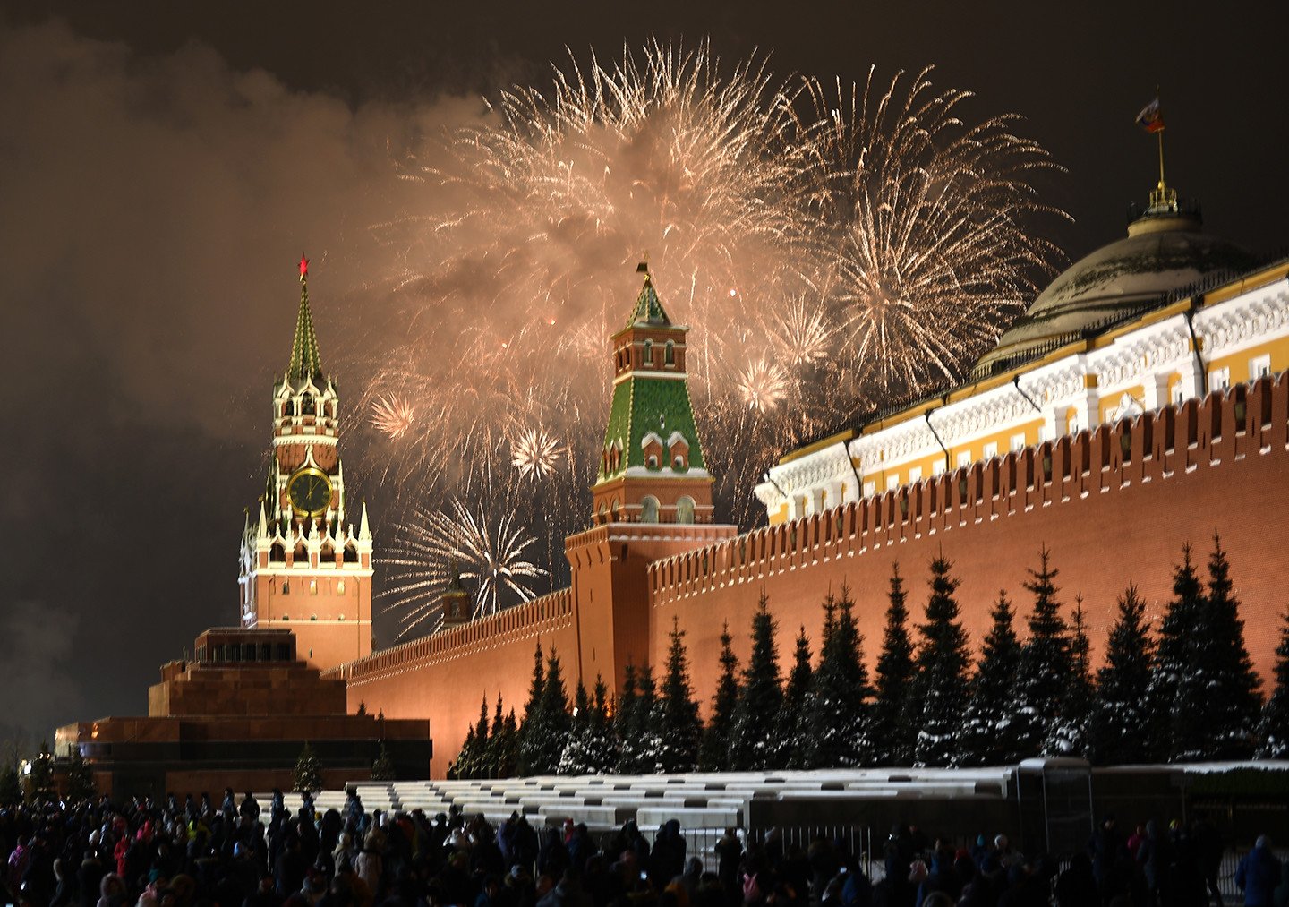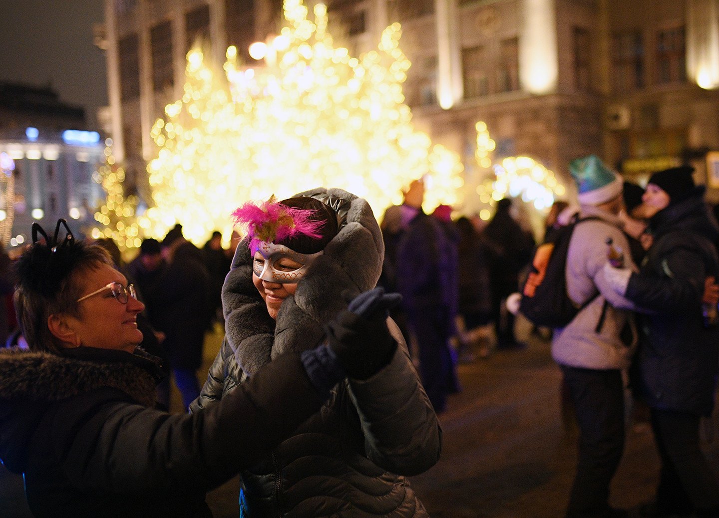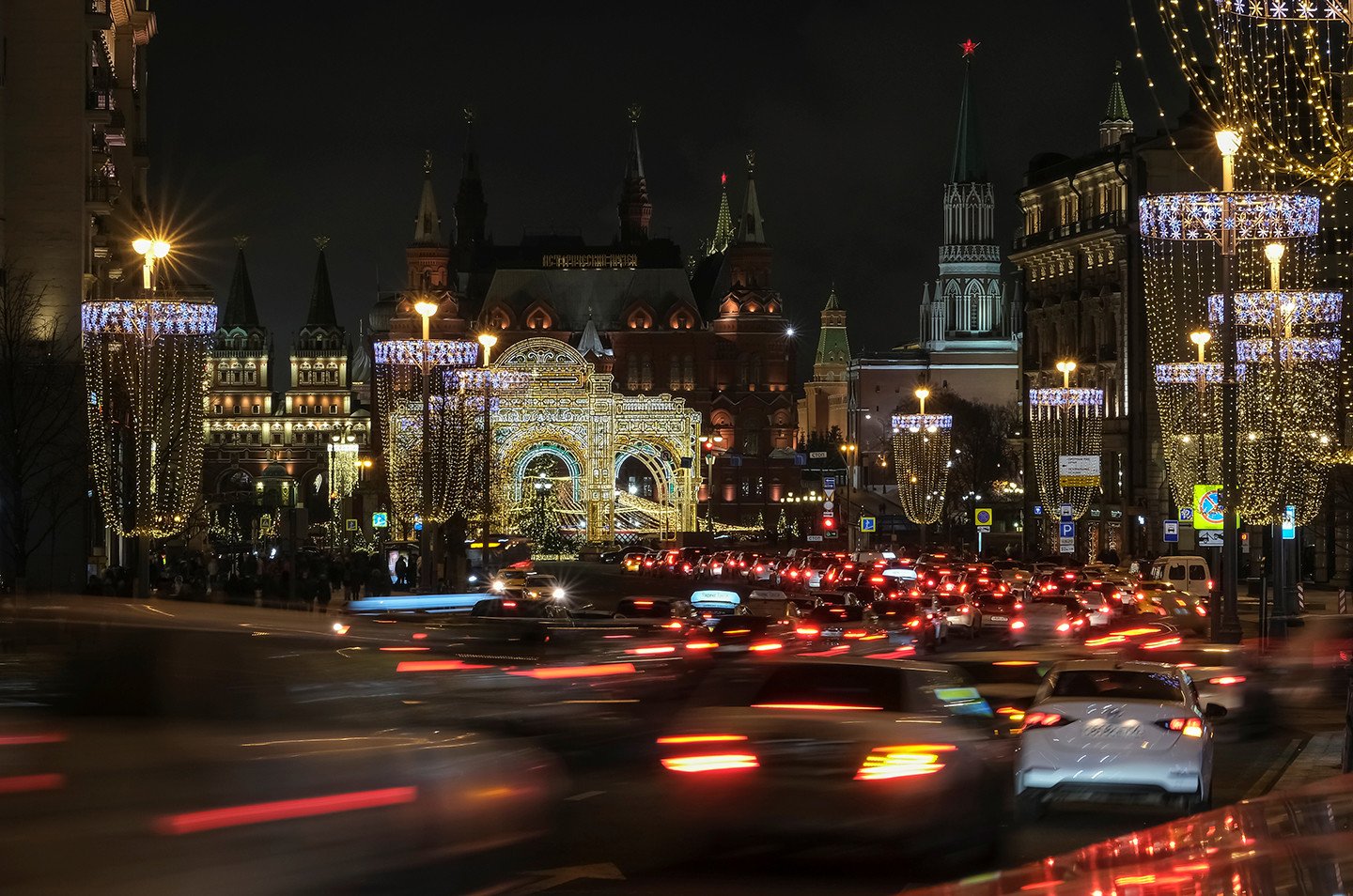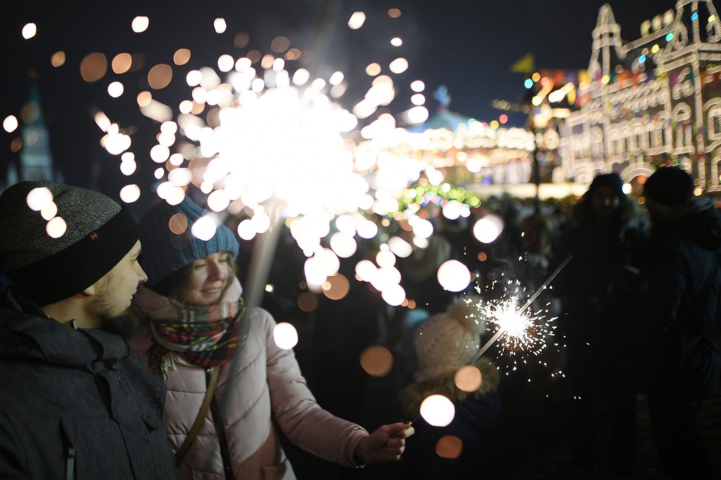 La capital rusa exhibe su cara festiva durante las fiestas navideñas y de Año Nuevo. Las calles de la metrópoli ostentan durante estos días luces de colores, enormes árboles de Navidad adornados con guirlandas (y hasta con libros) y mucha nieve. También se percibe en estas fechas en las coloridas avenidas y plazas moscovitas la atmósfera feriada que se manifiesta vía atavíos insólitos y sonrisas de los habitantes de la urbe y de miles de visitantes.