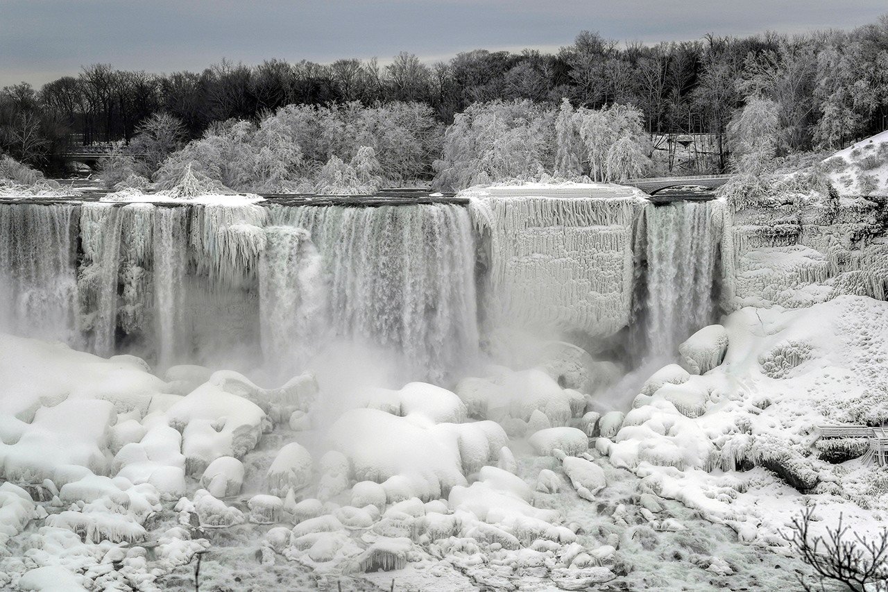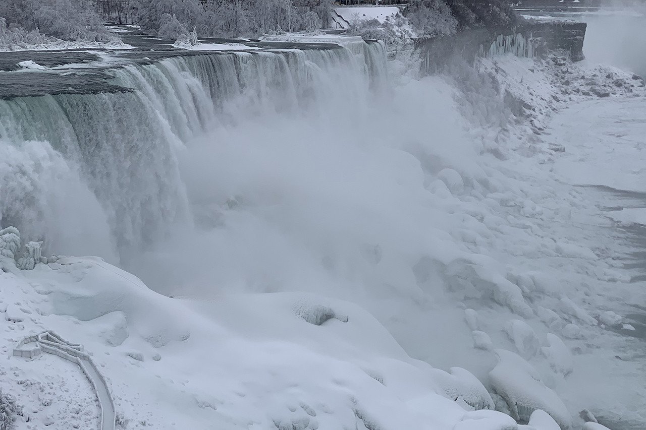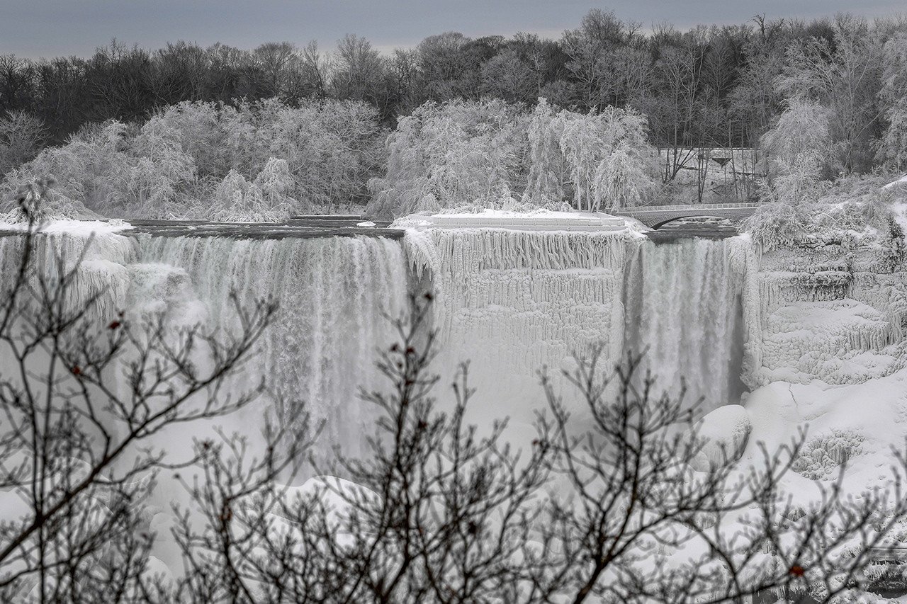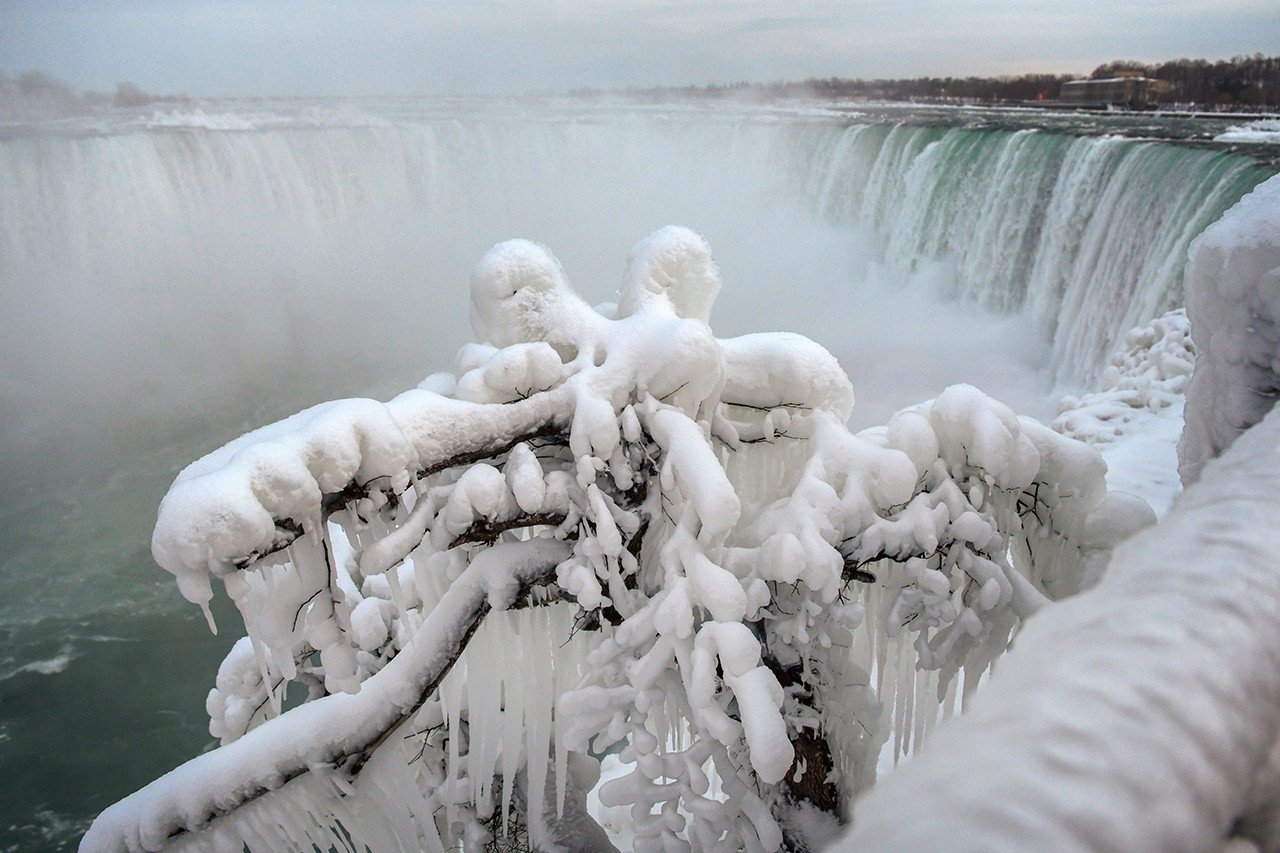 Un gélido temporal llena de carámbanos las cataratas del Niágara
