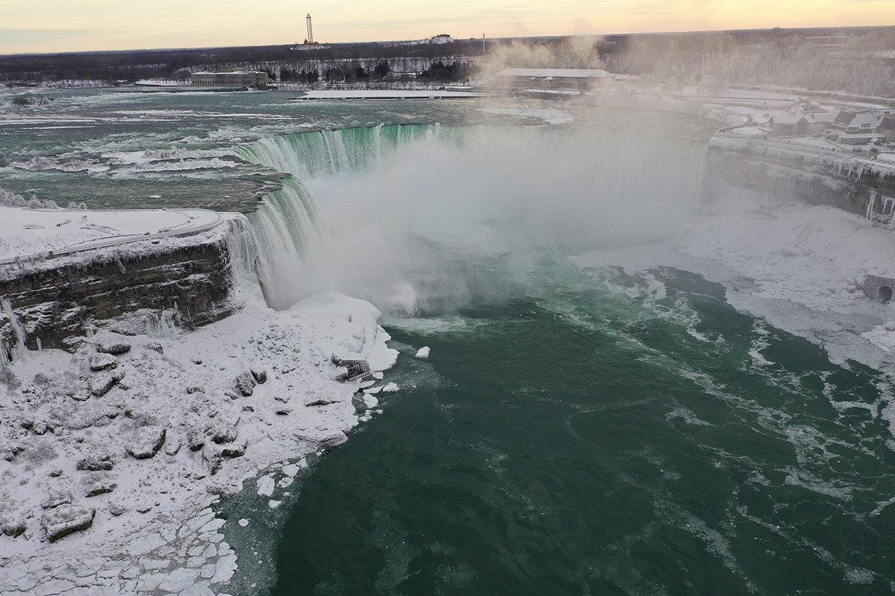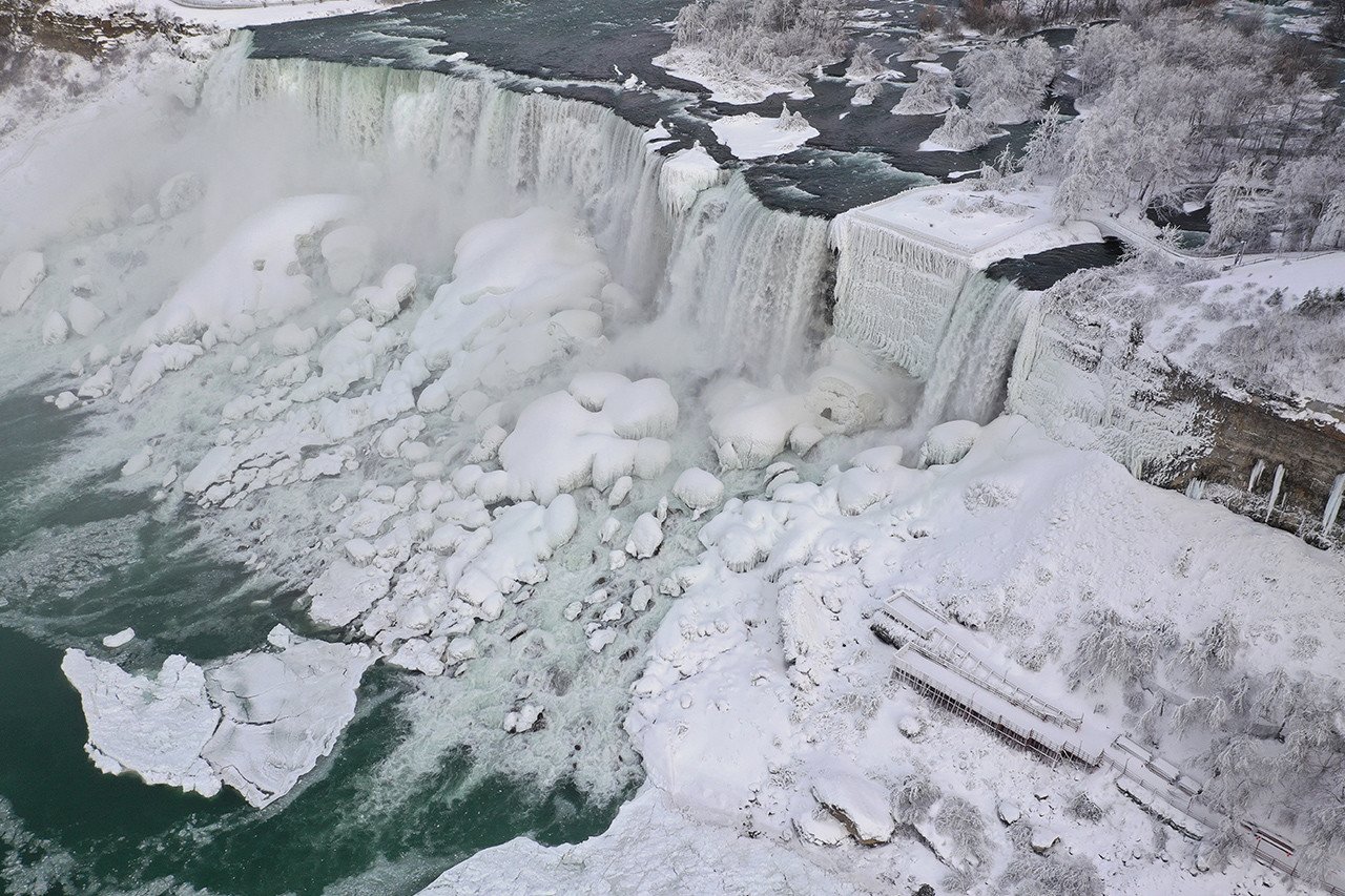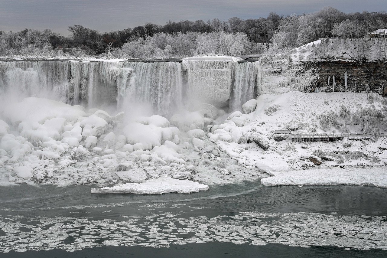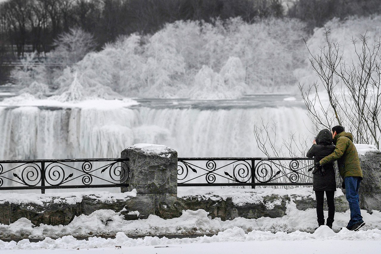 El este de Estados Unidos está en alerta por un temporal de frío. Las bajas temperaturas también dijeron presente en las cataratas del Niágara, que quedaron parcialmente congeladas y ofrecieron un paisaje único en el que el agua desciende en medio de enormes carámbanos hasta el lago Ontario, cubierto de nieve y hielo.