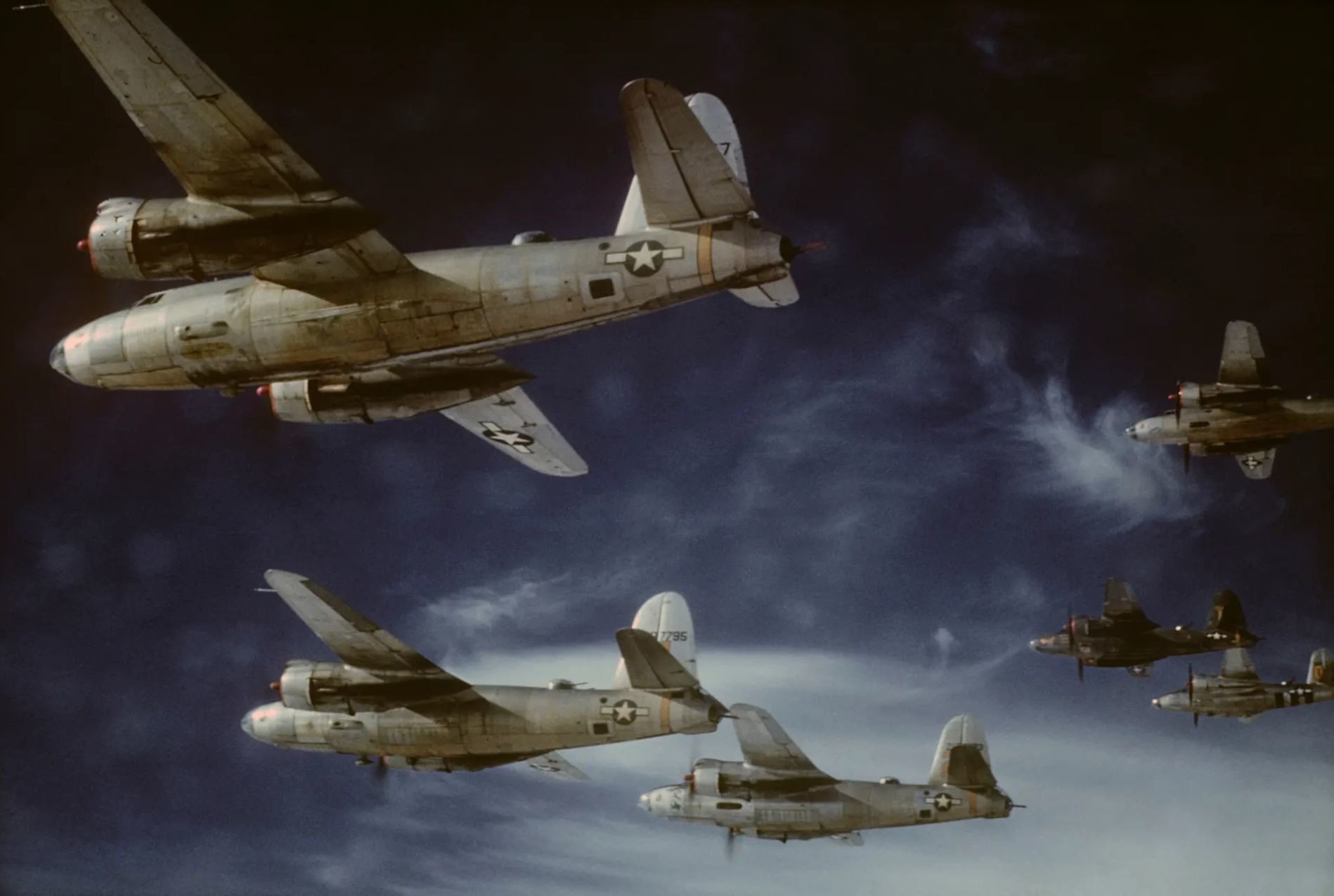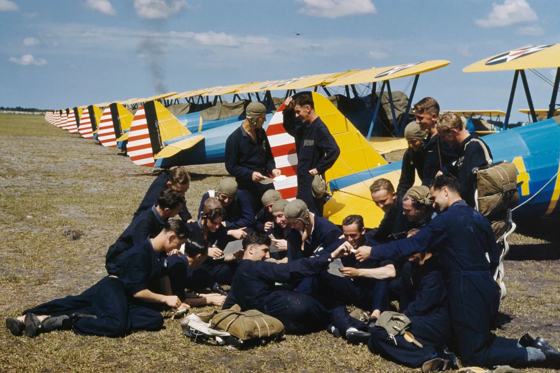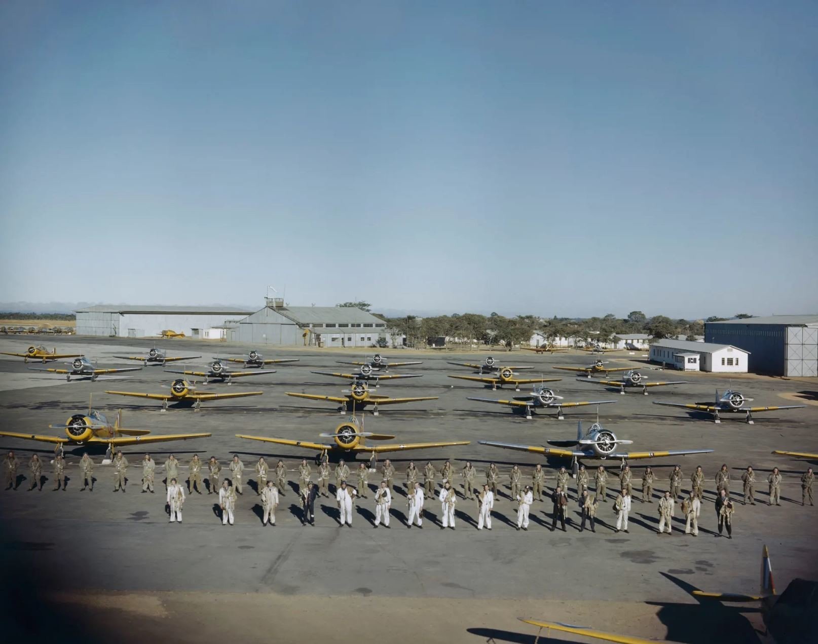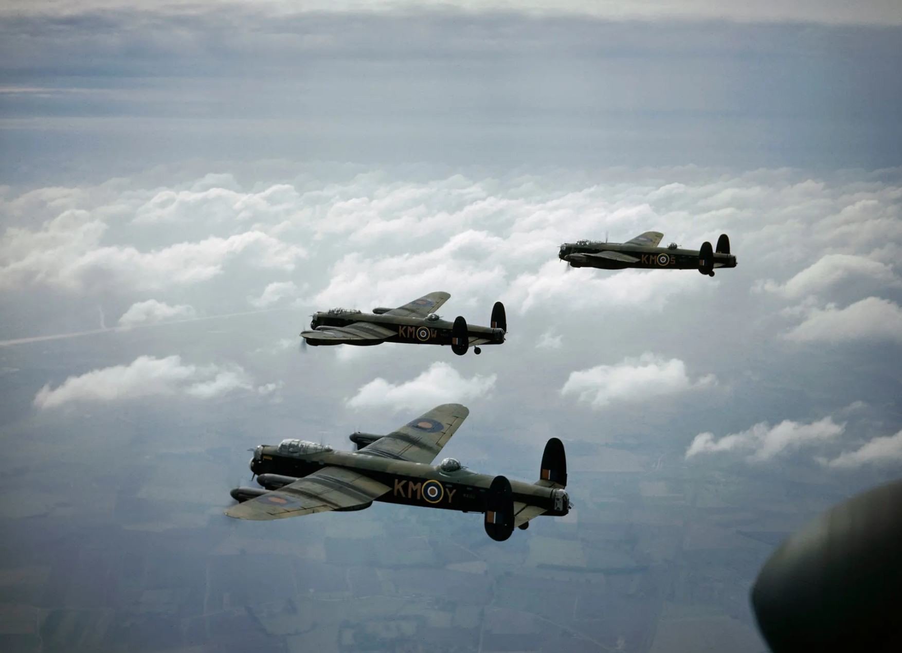 Parte de la colección de fotografías de libro 'Guerra en el Aire: La Segunda Guerra Mundial en color', del Museo de la Guerra Imperial de Reino Unido, muestra imágenes sobre el papel clave que jugaron las batallas aéreas en el desarrollo del gran conflicto. El conjunto de instantáneas cobra vida a pleno color y ofrece vistas de los aviones de combate, pilotos, entrenamientos y celebraciones de escuadrones de los aliados.