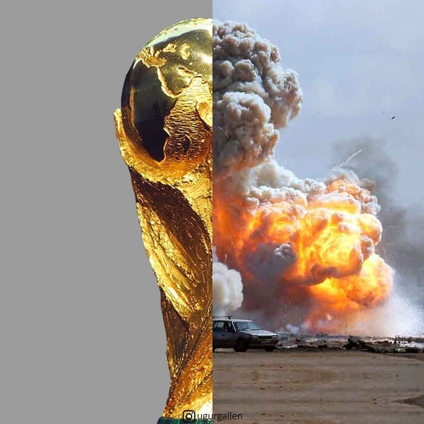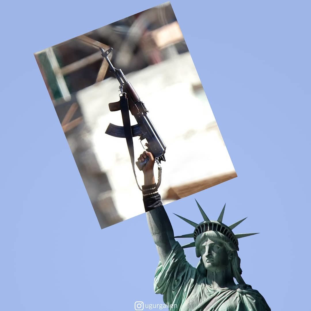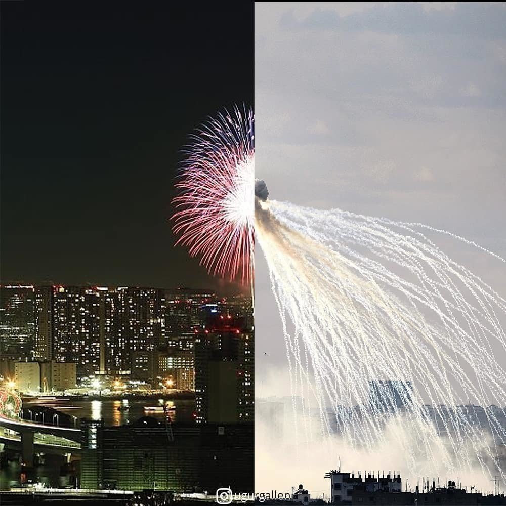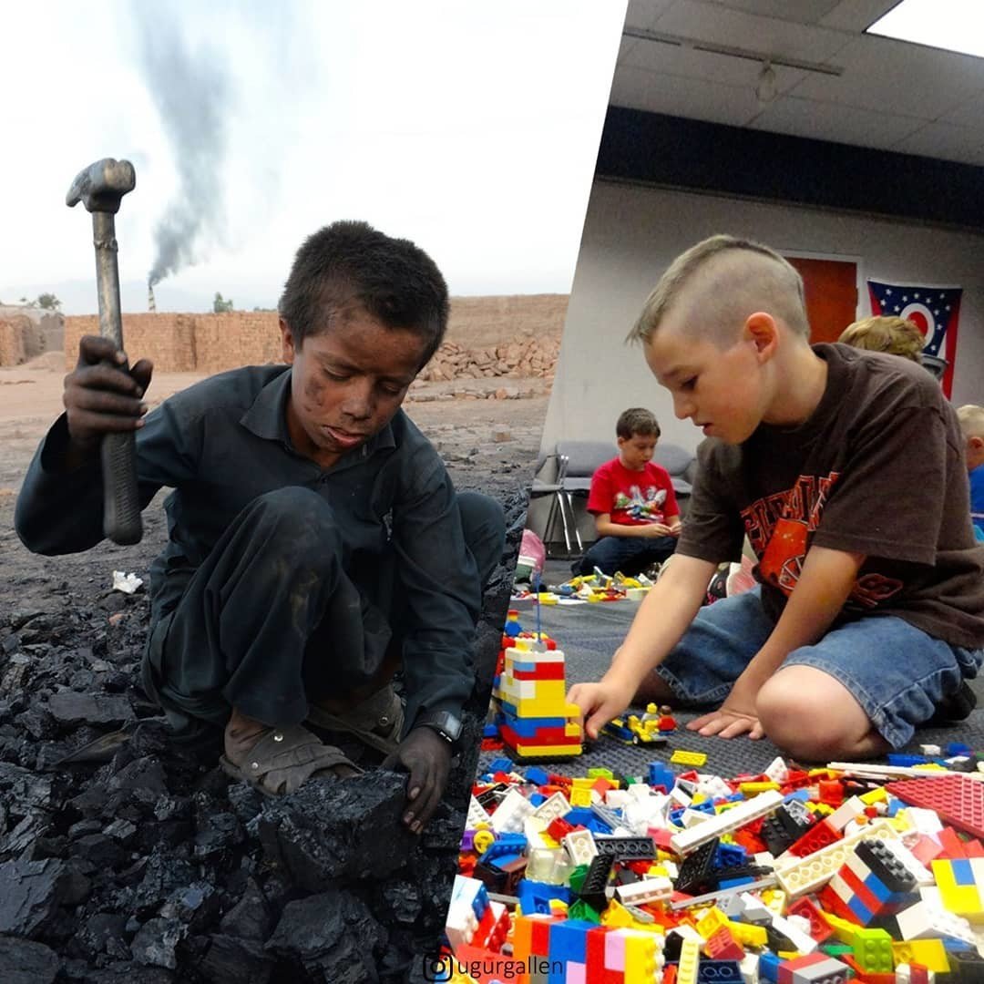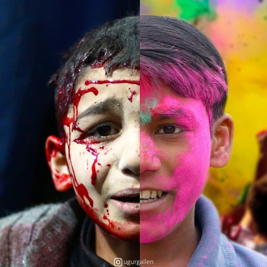 El turco Ugur Gallen publica en su cuenta de Instagram 'collages' que elabora con fotos reales y que reflejan los llamativos contrastes del mundo, sobre todo cuando es la guerra la que establece la línea divisoria. Gallen aboga por un mundo en paz y aborda en sus creaciones temas como la infancia, las armas o el consumismo.