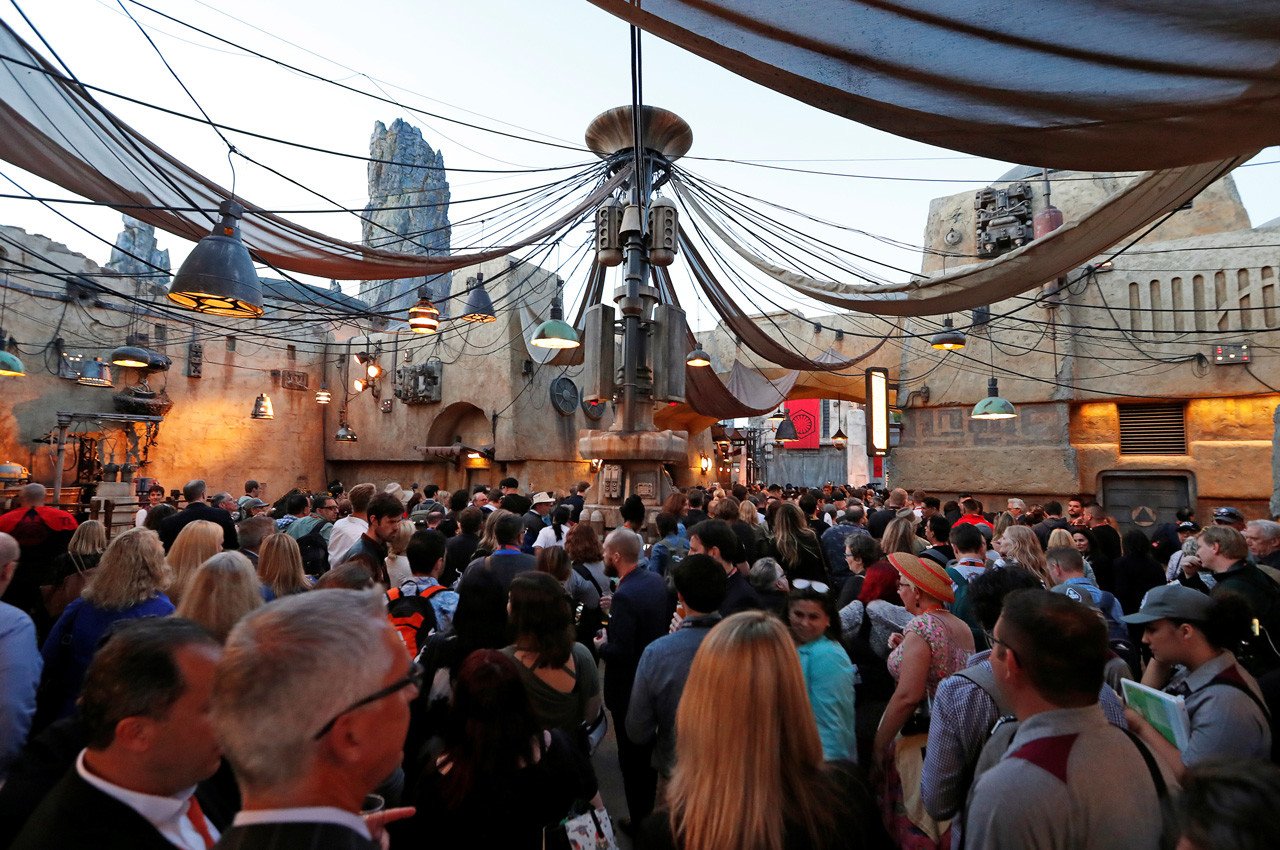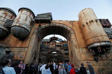 Un parque temático dedicado al universo de Star Wars ha sido inaugurado este viernes en el Disneyland de Anaheim (California, EE.UU.). El nuevo espacio de ocio, que cuenta con una superficie de alrededor de 56.000 metros cuadrados, ofrece a todos los amantes de la mítica saga de ficción la posibilidad de pilotar un simulador de la nave espacial Halcón Milenario o de subir a una atracción para vivir una batalla entre la Primera Orden y la Resistencia.
