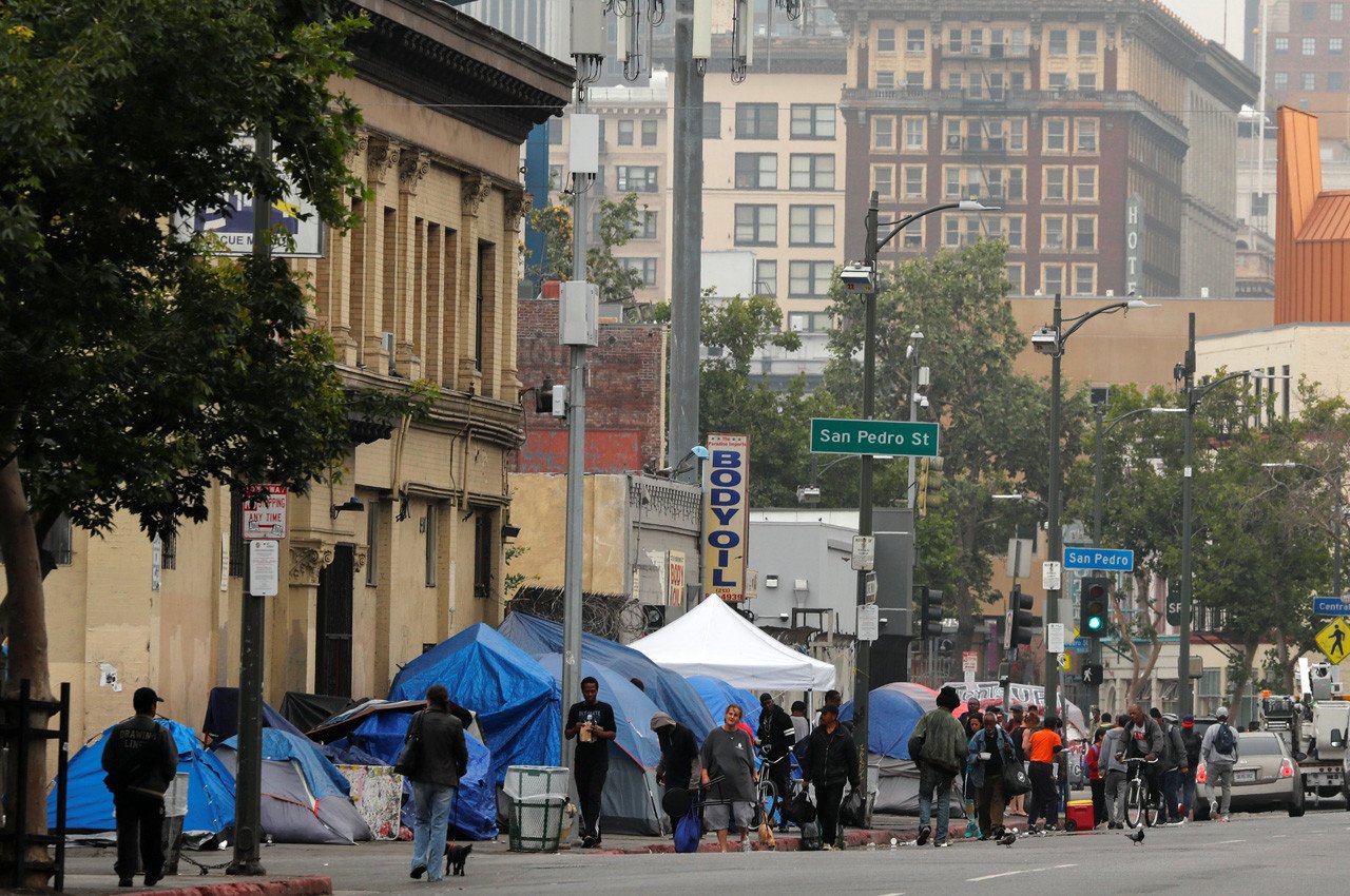 Miles de personas sin hogar viven en este barrio, que se ubica en el corazón de la ciudad de Los Ángeles, California. El paisaje aquí está marcado por la pobreza, la falta de higiene, tiendas de campaña y personas durmiendo en la calle. Muchas de ellas están expuestas a brotes epidémicos de enfermedades como el tifus y la hepatitis. Y además, a pesar de la fuerte presencia policial, el lugar se hace extremadamente peligroso cuando cae la noche.