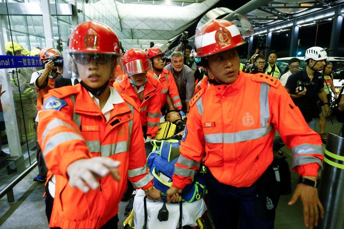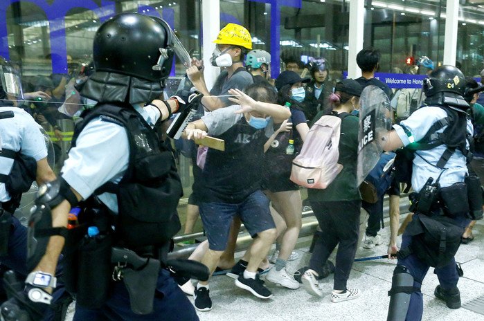 Duros choques entre los manifestantes y la Policía en el aeropuerto de Hong Kong