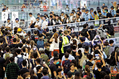 El aeropuerto internacional de Hong Kong ha vivido este martes la quinta jornada consecutiva de ocupación por parte de manifestantes antigubernamentales, que acabaron chocando con la Policía. Los agentes utilizaron gas pimienta contra los participantes de la protesta, que bloquearon las instalaciones causando la suspensión de al menos 300 vuelos.