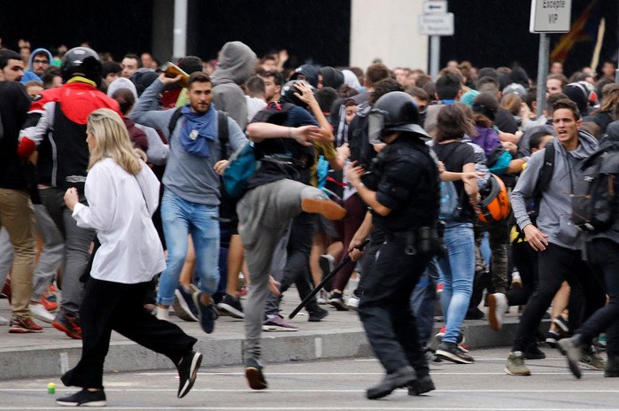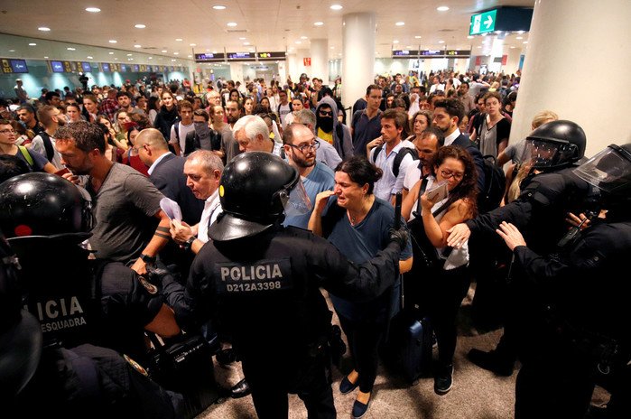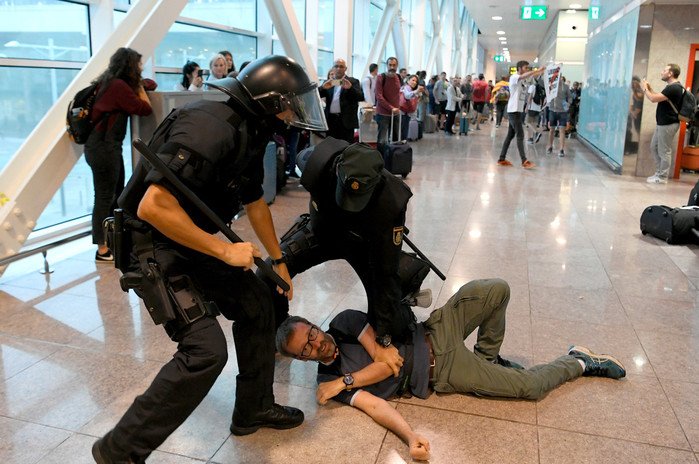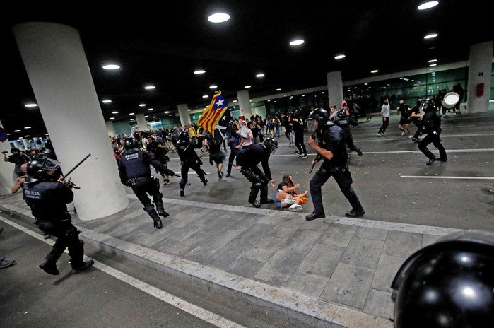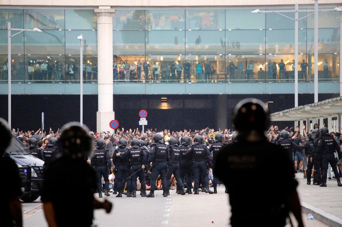 Tras conocerse este lunes la sentencia contra nueve líderes independentistas catalanes, que se enfrentan a entre 9 y 13 años de prisión por su participación en el 'procés', miles de personas han tomado el aeropuerto El Prat de Barcelona, mostrando su desacuerdo con el fallo emitido por el Tribunal Supremo de España. Al menos se han registrado 37 heridos, mientras cien vuelos fueron cancelados por los enfrentamientos entre los Mossos d’Esquadra (la Policía local de esa región) y manifestantes.