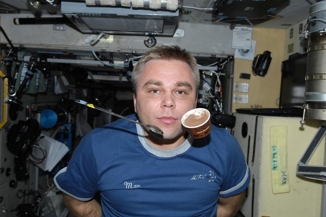 ¿Ven como vuela todo en la ingravidez? La comida, las cucharas, yo mismo:)