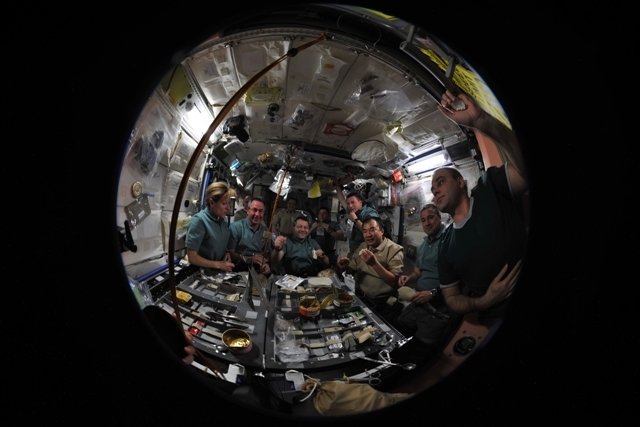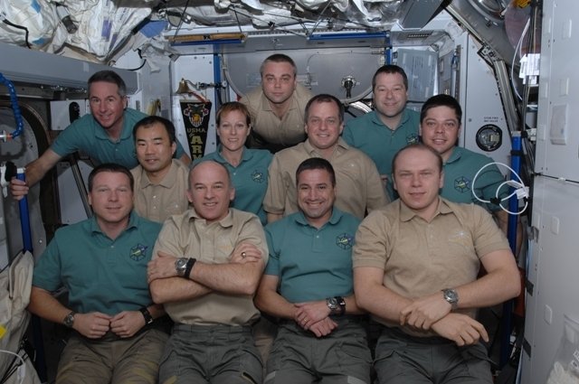 Este transbordador espacial trajo un módulo nuevo al segmento estadounidense. Ahora ahí hay algo parecido a un gimnasio. Trasladamos para allá todos los aparatos de gimnasio. Resulta que su segmento está dividido en zonas: el dormitorio, el gimnasio, la oficina. Es muy cómodo.