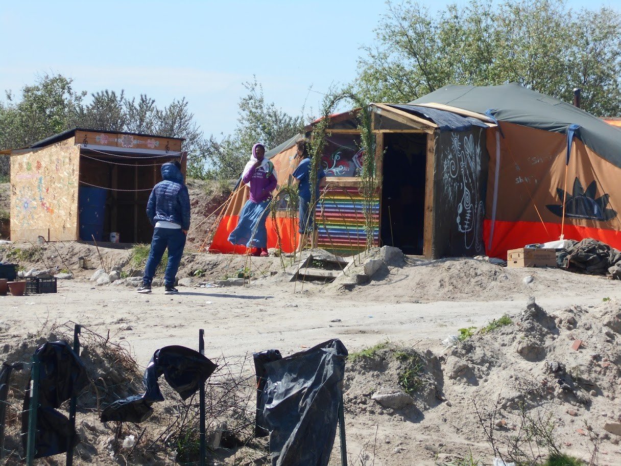 El campamento es propio de un pueblo nómada. Está pensado para irse y no para instalarse, nadie piensa en construirse una vivienda, todos improvisan tiendas de campaña. Cuando alguien llega, por lo general es acogido por la gente de su comunidad; están notoriamente subdivididas las áreas según la nacionalidad. El recién llegado se ubica en alguna que tenga lugar o se apropia de la de alguno que pudo cruzar a Inglaterra; si no quedan alternativas se construye una propia.