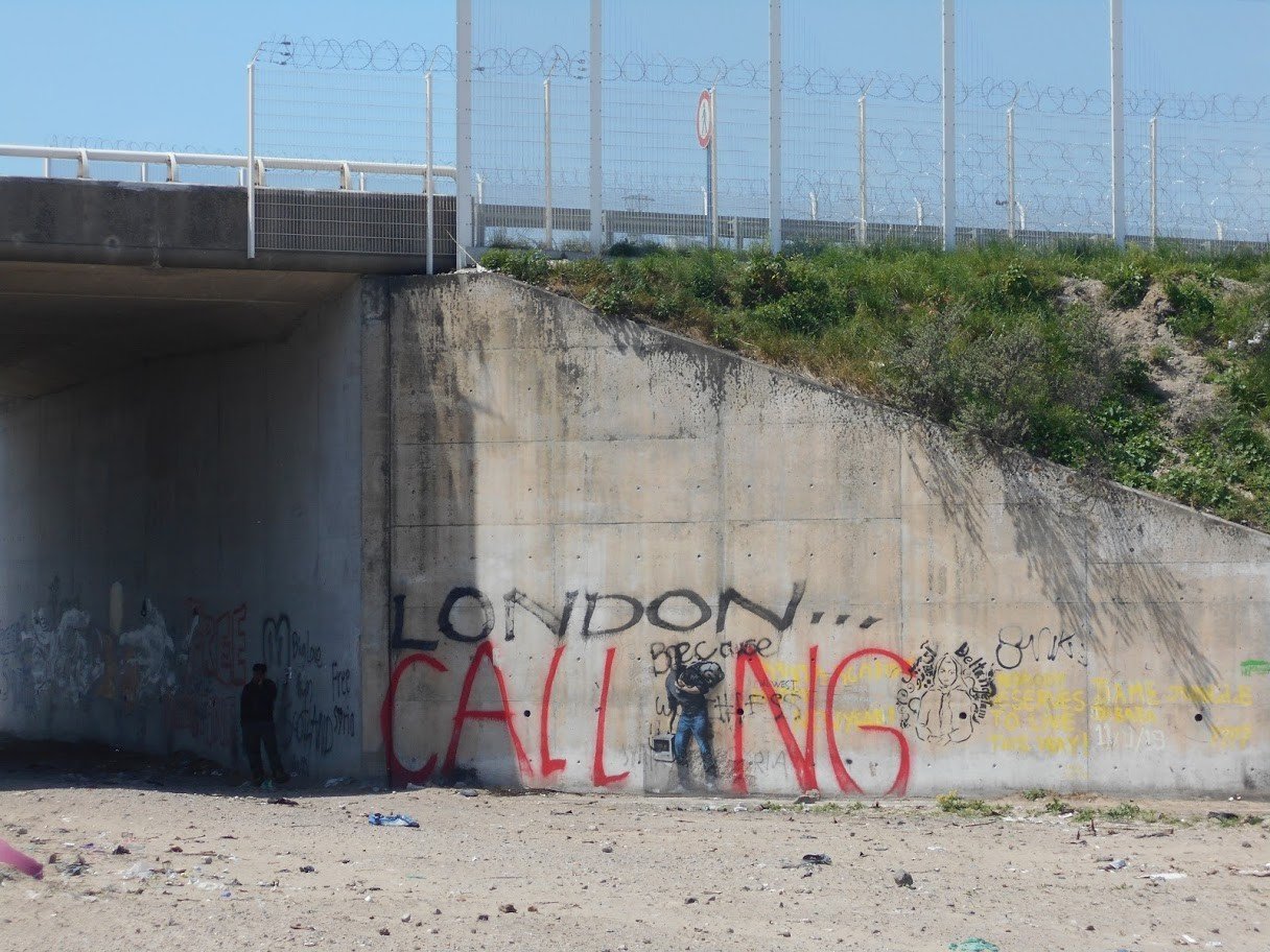 Antes de intentar cruzar lavan su ropa, se afeitan y hasta se perfuman, cuando abandonan la "jungla" pasan por delante de un grafiti hecho por Bansky que dice en grande "London calling" (Londres llama). Quizás esta noche puedan atender el llamado.