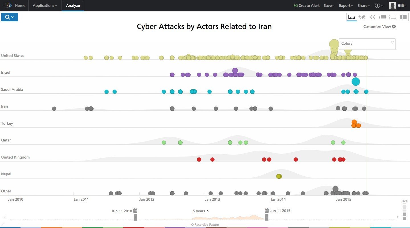 Como se desprende de las imágenes, se deduce que hubo más ataques de Irán que al revés, pero muchos de los ataques virtuales realizados por Estados Unidos contra Irán han sido en momentos sensibles en la relación entre los Ayatolas y Arabia Saudita. Los iraníes suelen denunciar que Arabia Saudita, tanto a nivel cibernético como bélico, deja que sus aliados hagan el "trabajo sucio". En 2010 se desarrolló la Operación Olympic Games. Fue llevada a cabo por Estados Unidos e Israel y desactivó mil centrifugadoras para el enriquecimiento de uranio en la central de Natanz (Irán) a través del virus informático Stuxnet.