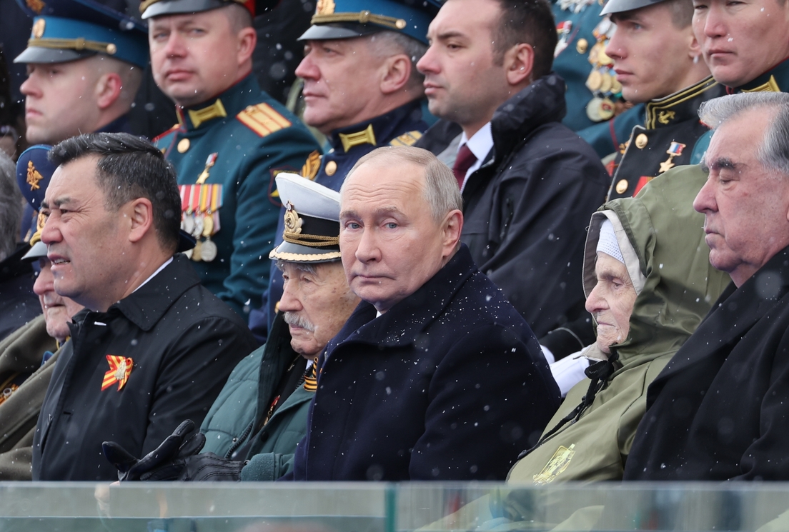 Vladímir Putin estaba sentado entre dos veteranos, héroes de la Gran Guerra Patria: el coronel del Ejército Rojo Yevgueni Kuropátkov, héroe de Stalingrado y participante del Desfile de la Victoria de 1945, y la famosa francotiradora Alexandra Alióshina, que fue a la guerra como voluntaria a sus 17 años.