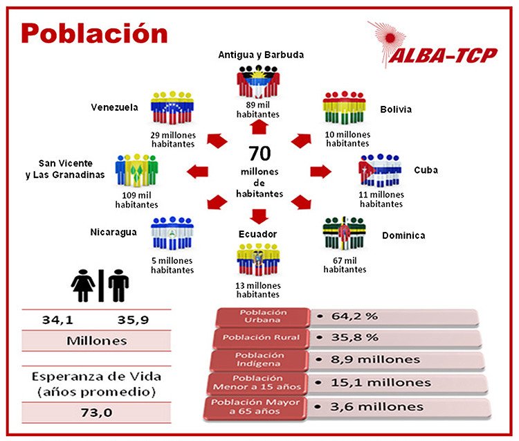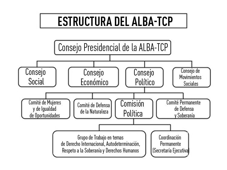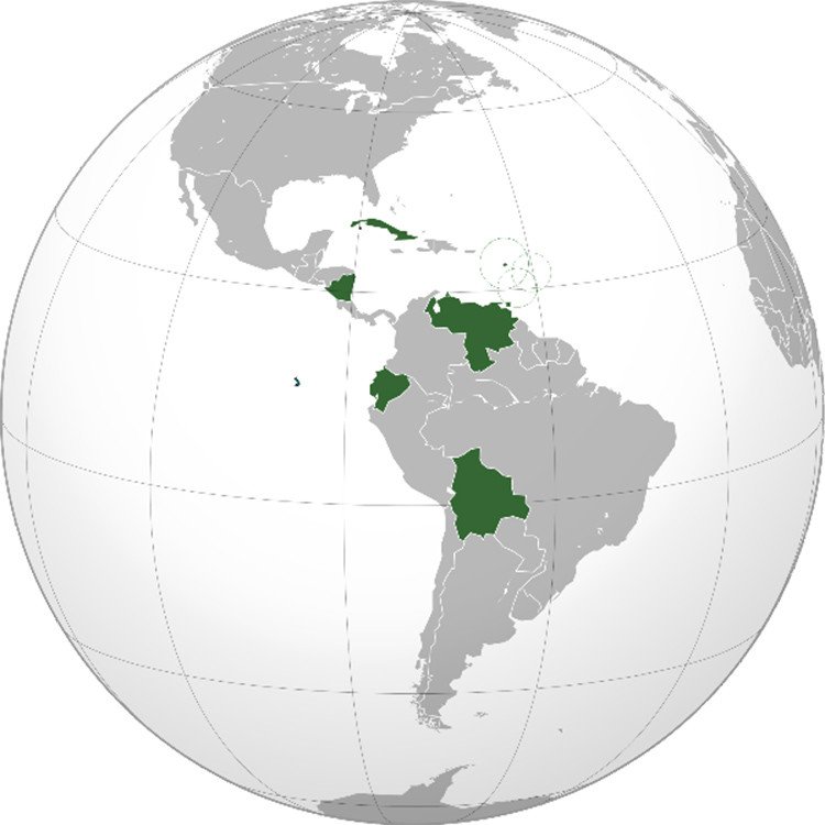 Estados miembros: El bloque cuenta con 12 miembros de pleno derecho: Venezuela, Cuba, Bolivia, Nicaragua, Ecuador, Antigua y Barbuda, Dominica, Granada, San Cristóbal y Nieves, San Vicente y las Granadinas, Santa Lucía.