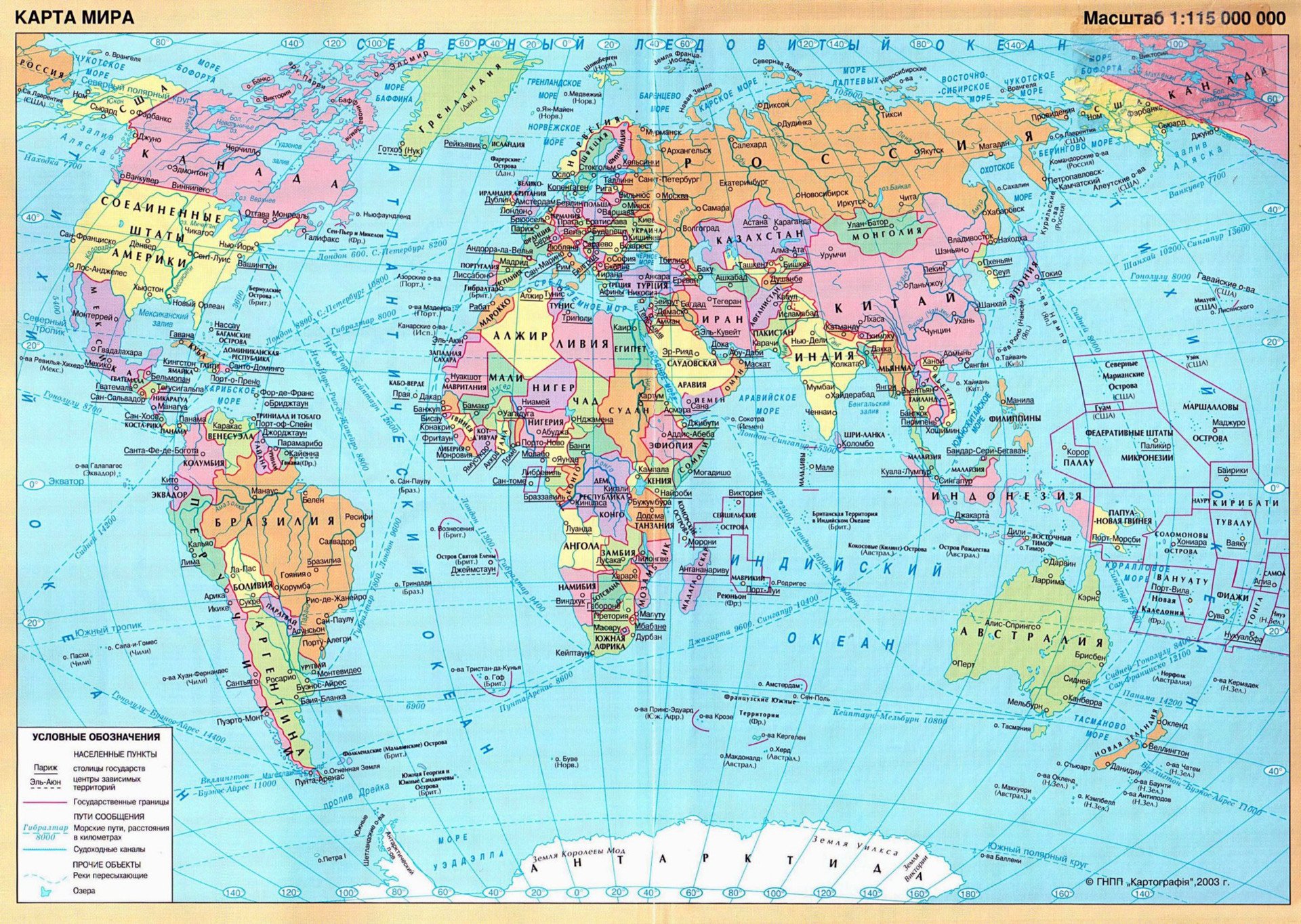 El eje vertical central del mapa discurre a través de Moscú. De esta forma, tanto Estados Unidos como Australia se encuentran en la 'periferia' del mundo y el océano Pacífico no es percibido como un espacio único.