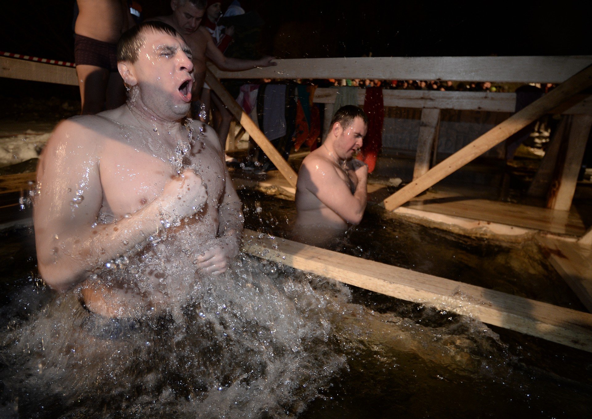 La fiesta del Bautismo del Señor, una de las principales del calendario de la Iglesia ortodoxa rusa, se celebra cada diecinueve de enero. Pese al frío, los fieles se bañan en baptisterios y albercas según la antigua tradición que se extendió en Rusia desde la adopción del cristianismo. Sacerdotes y fieles se dirigen a ríos, lagos y otras fuentes de agua en donde de antemano se ha abierto en el hielo un agujero en forma de cruz.