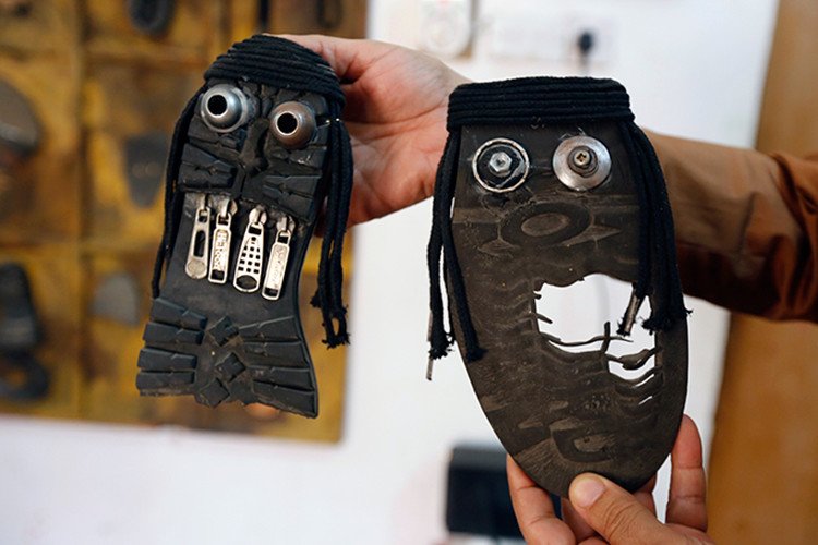 Akeel Khreef, un profesor de ingeniería arquitectónica iraquí lucha a su modo contra el Estado Islámico (EI,) exponiendo su monstruosidad por medio de obras del arte hechas de zapatos viejos. Así, convirtiendo el calzado desgastado en 'las caras feas del EI', Khreef se burla los de yihadistas del EI, informa AFP.