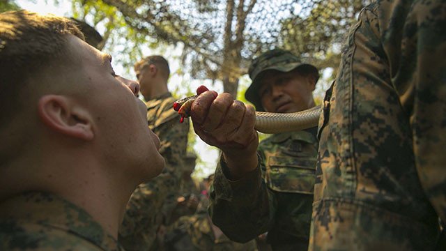 No se trata de un intento de alterar los gustos gastronómicos de los soldados, sino que el mando los capacita para sobrevivir a cualquier tempestad o asedio en las selvas tropicales.