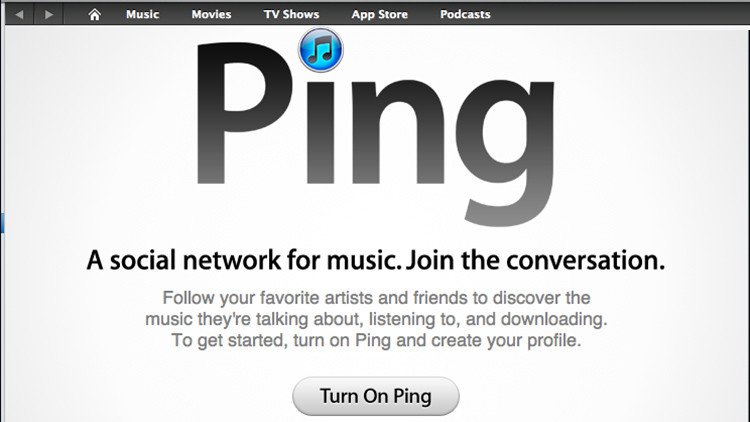 La red fue predestinada a convertirse en "Facebook y Twitter juntos pero en iTunes", según Steve Jobs, aunque nunca cumplió su función. Ping permitía seguir a cantantes y compartir la música encontrada.