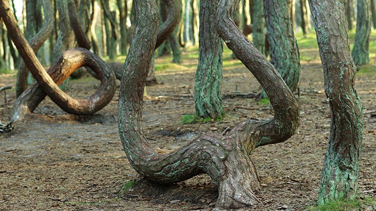 En la orilla del río Oká, Rusia, crece el llamado bosque borracho o bailarín, un recinto lleno de coníferas inclinadas. De acuerdo con una versión científica, la causa de la inclinación de los árboles reside en su campo magnético, que hiló los ejes de árboles y creó un paisaje extraordinario.