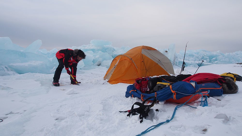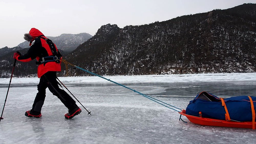 El objetivo de la travesía era recorrer los 670 kilómetros que separan la zona sur del lago y su extremo norte y explorar el terreno. Durante su aventura, que empezó el pasado 27 de febrero,el exploradorcombinó trayectos en esquí, a pie y buceando. Avanzó hasta 30 kilómetros al día arrastrando unos 100 kilos de material repartidos en dos trineos especiales.