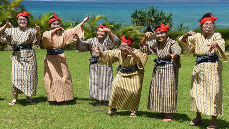 Menaka normalmente camina con la ayuda de un bastón, pero cuando está en el escenario se siente renacer. "Nunca he estado tan feliz como cuando actuamos", aseveró la cantante, de 92 años. "Me siento joven de corazón", concluyó. De hecho, los habitantes de Okinawa cuentan con una de las esperanzas de vida más altas del mundo; su dieta se basa en las verduras (el ingrediente clave es la patata dulce de Okinawa) y contiene menos cantidades de arroz y azúcar que la de otras islas niponas.