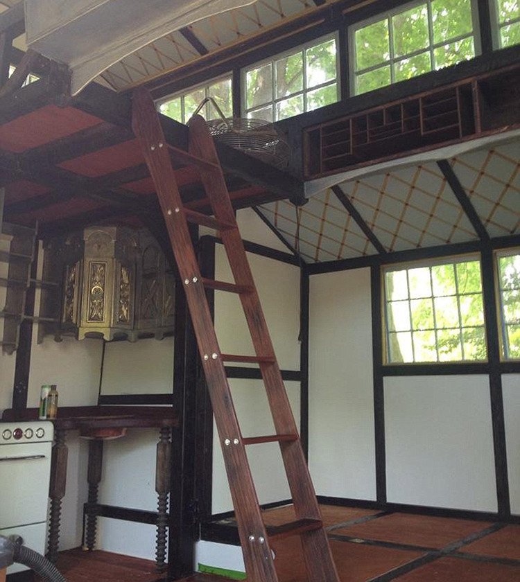 La creativa pareja ha construido una diminuta casa sobre ruedas que consiste casi por completo en materiales de los escenarios cinematográficos donde trabajan, Chloe como estilista y Brandon como carpintero. Además, la casa está diseñada de tal manera que se puede plegar para su transportación.
