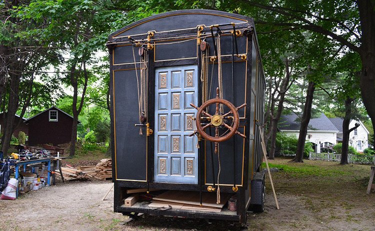 Según ha contado Brandon en una entrevista a 'Daily Mail Online', la idea de construir una casa sobre ruedas fue de Chloe, que también es fotógrafa y escenógrafa. Además, la pareja se inspiró en el aspecto de vagones de ferrocarril, diligencias, caravanas de gitanos y barcos antiguos. La casa tiene un despacho, un dormitorio, una sala, una cocina y un cuarto de baño. La pareja también quiere instalar un sistema de recogida de agua, un panel solar, armarios y un portal.
