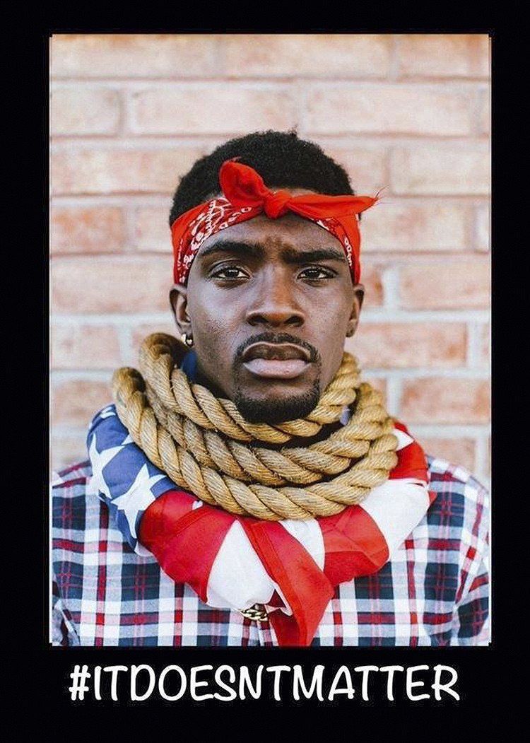 El actor y activista, de 20 años, explicó que la inspiración para las fotos le llegó durante un sueño en el que se vio a sí mismo colgado de una bandera estadounidense, con los mismos atuendos que después presentó en sus fotografías. El artista dijo que esa experiencia le dejó un "fuerte mensaje" para compartir.