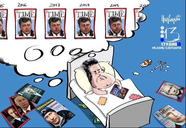 A raíz de que el presidente ucraniano Piotr Poroshenko se jactase a través de su cuenta de Twitter de sustituir a Putin en una edición falsificada de 'The Economist', los internautas se han lanzado a burlarse de él con una serie de fotomontajes basados en otras revistas internacionales.