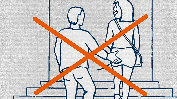 Frente a estos ejemplos, se ilustran situaciones mal vistas en el país con una enorme 'X' sobre la imagen. Es el caso del maltrato infantil, la violencia como forma para resolver conflictos y el acoso sexual, ilustrado este último con un hombre tocándole el trasero a una mujer con minifalda.