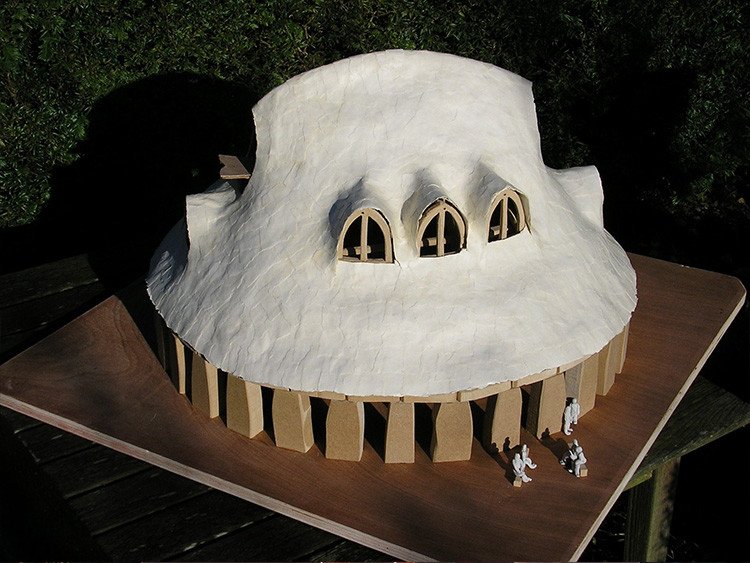 Ewbank opina que los lados del edificio eran de roble y el techo de paja. Interpelada sobre la ausencia de restos del supuesto techo, Ewbank señala que abadías construidas hace 500 años han perdido sus techos. "Así que no espere encontrar estructura de madera ahí después de 4.000 años [de la existencia de Stonehenge]", explica.