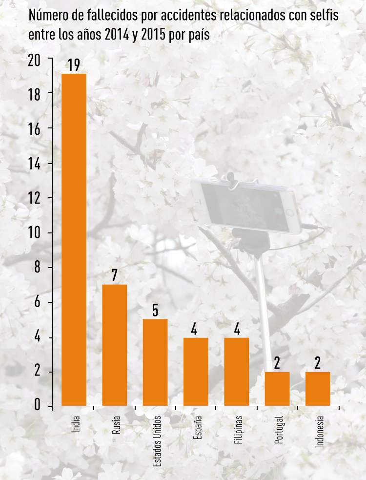 A la India le sigue Rusia, donde varios jóvenes han muerto mientras caminaban por puentes y azoteas y se grababan para demostrar sus habilidades físicas en las redes sociales. El Ministerio del Interior llegó a difundir una breve guía que detalla cómo no morir mientras se hace una foto.