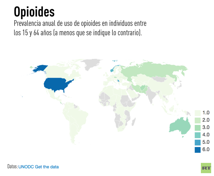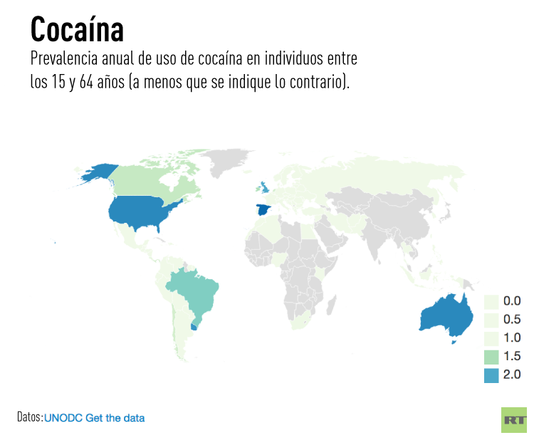 Los datos indican que los opioides como la heroína, tienen un consumo significativo en EE.UU., Suecia y Serbia. Por otra parte, la cocaína, considerada la droga que más narcotráfico genera, es consumida en altas cantidades en países como Estados Unidos, España y Brasil.