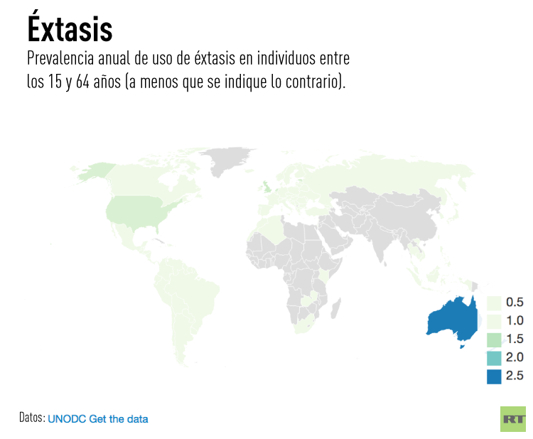 De acuerdo con los datos del último Informe Mundial sobre Drogas de la Organización de Naciones Unidas (ONU), cerca de 300 millones de personas son consumidoras de sustancias narcóticas. El creciente uso de drogas como el éxtasis o las anfetaminas, principalmente distribuidas entre los jóvenes, es motivo de preocupación en países como Australia.